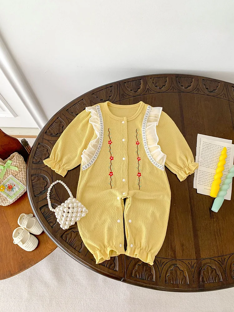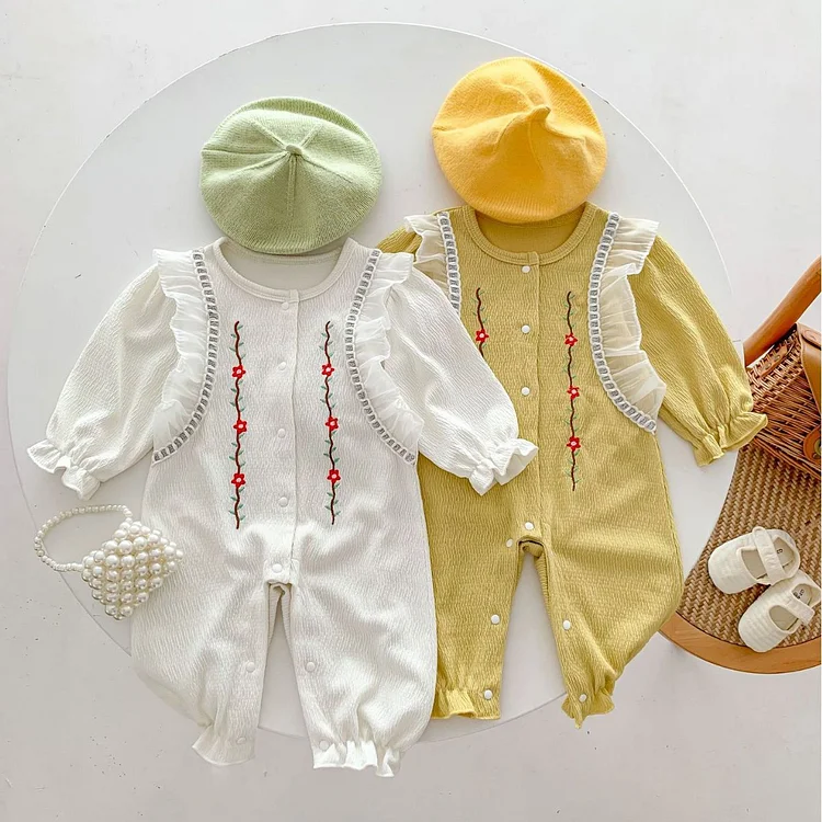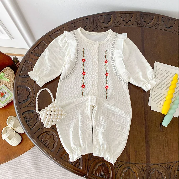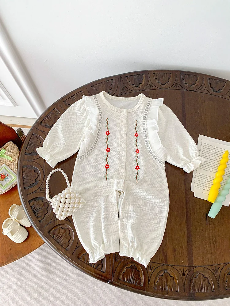 [66-100cm]オールインワン 花柄 刺繍 おしゃれ ベビー服