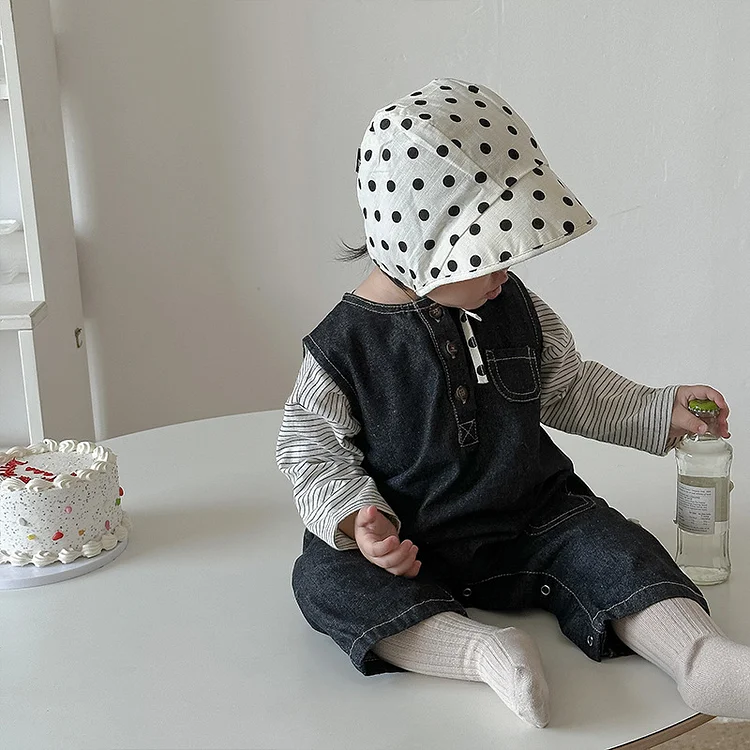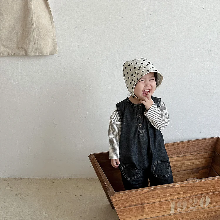 [66-100cm]サロペット ロンパース コーデュロイ リボン シンプル