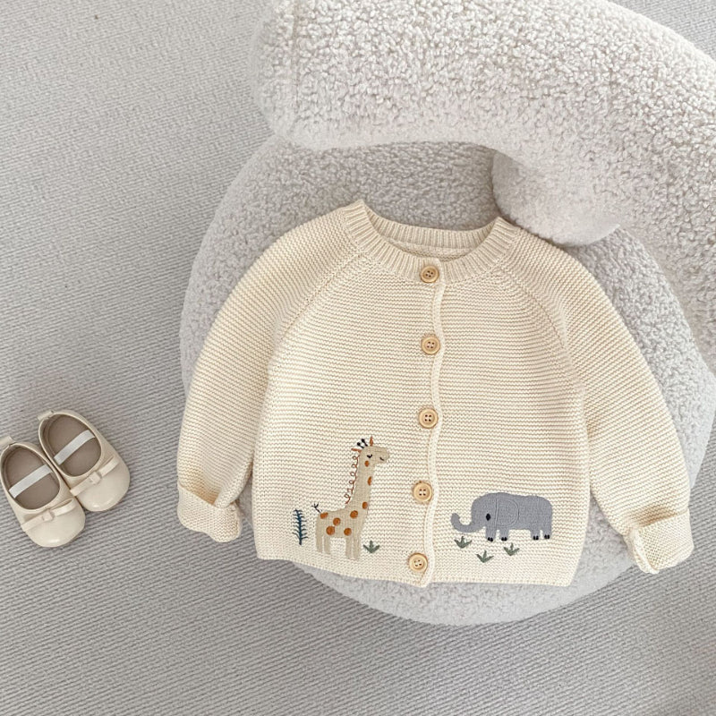 [66-100cm]キリン&ゾウ刺繍 ニット カーディガン