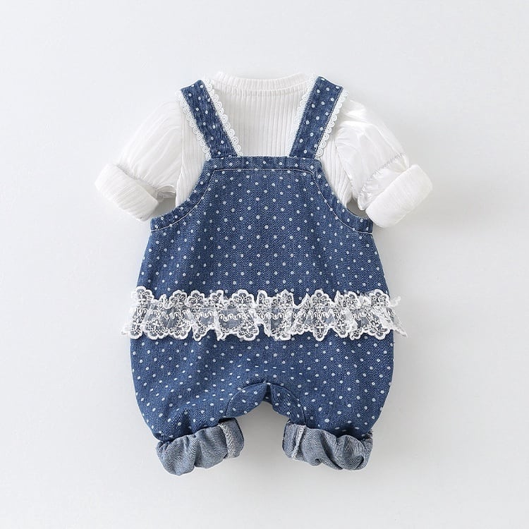 [66-100cm]サロペット&ブラウス デニム ドット 可愛い 人気