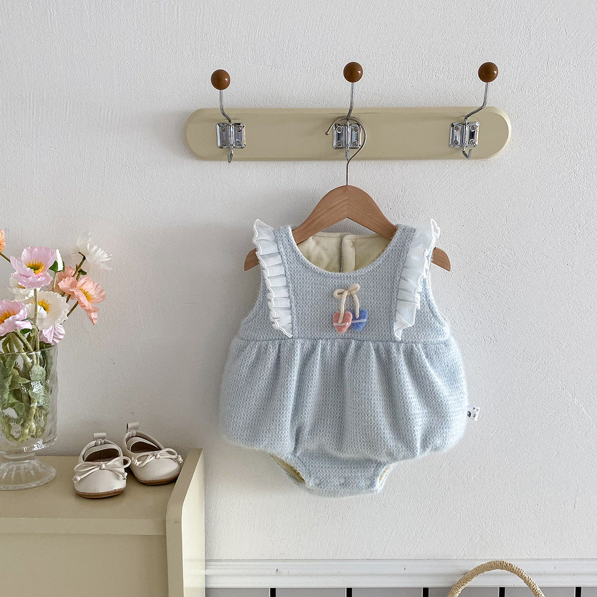 [66-100cm] フリル襟 ニット ロンパース