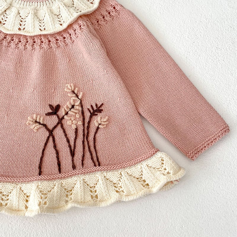 [66-90cm]ロンパース 韓国風 フリル襟 花刺繡 おしゃれ ベビー服