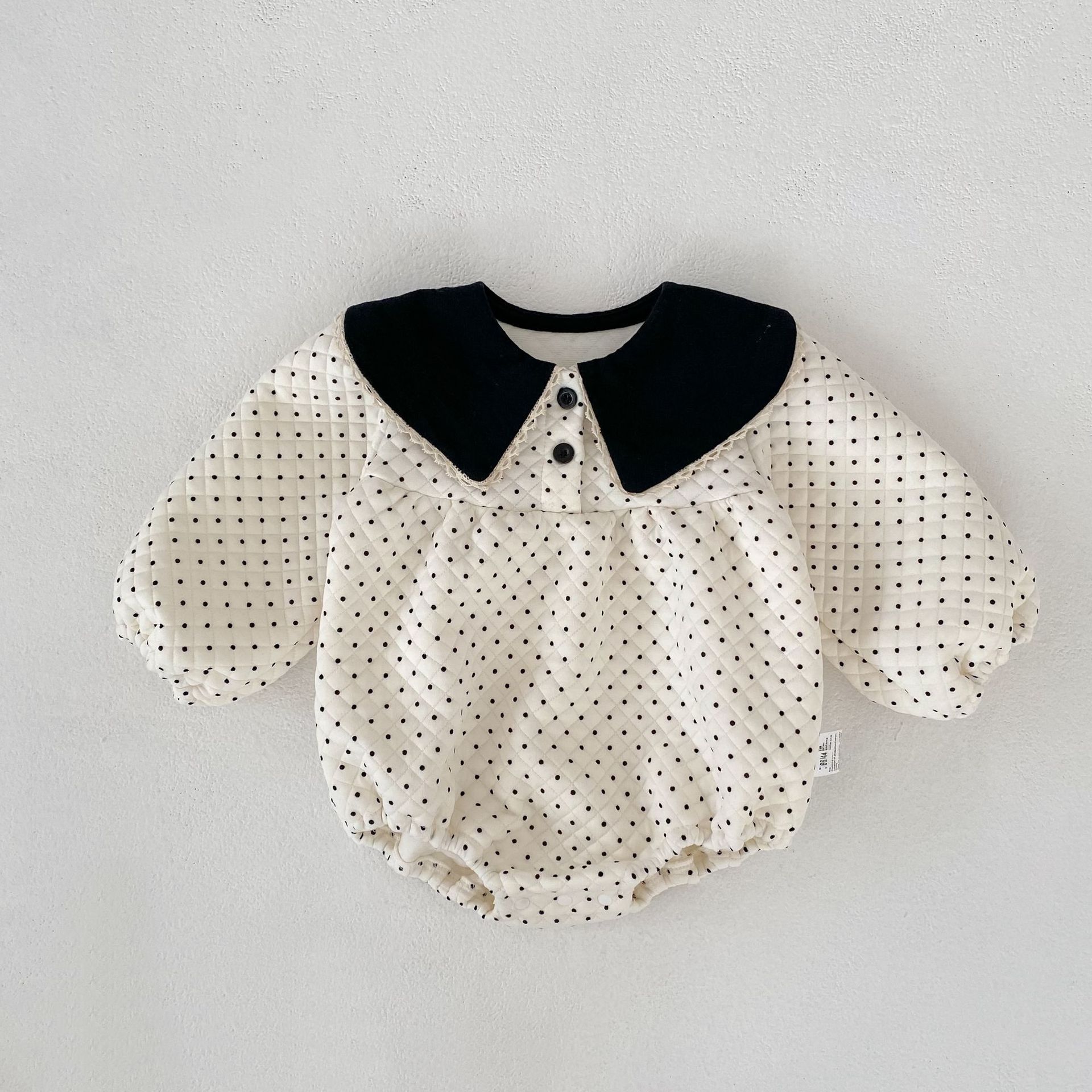 [66-90cm]ロンパース リボン レース襟 定番 肌触り良い ベビー服