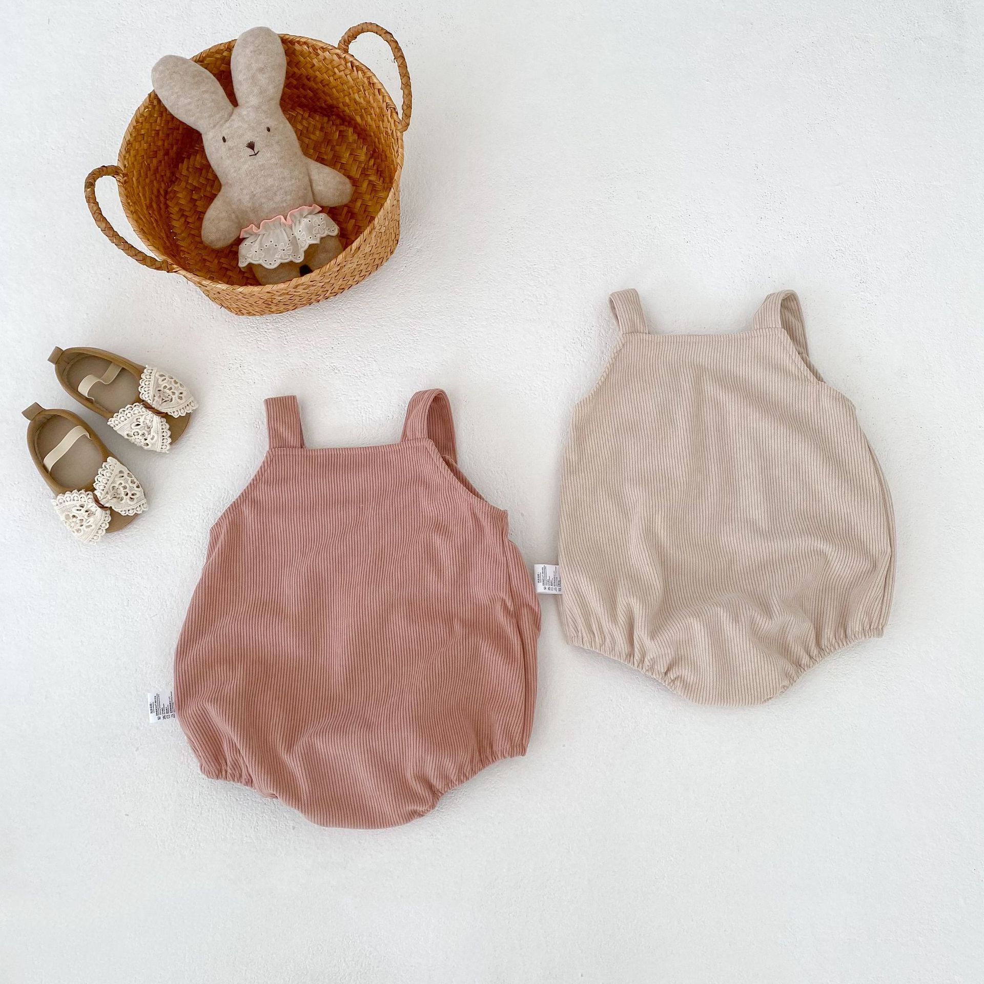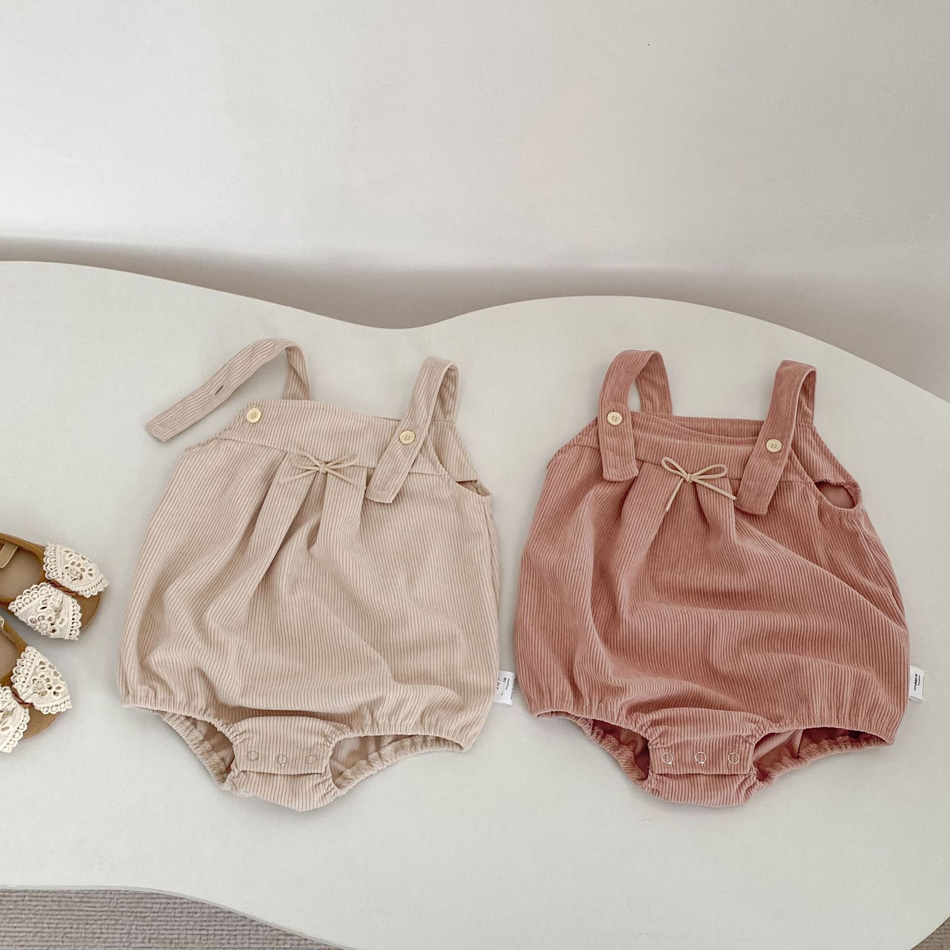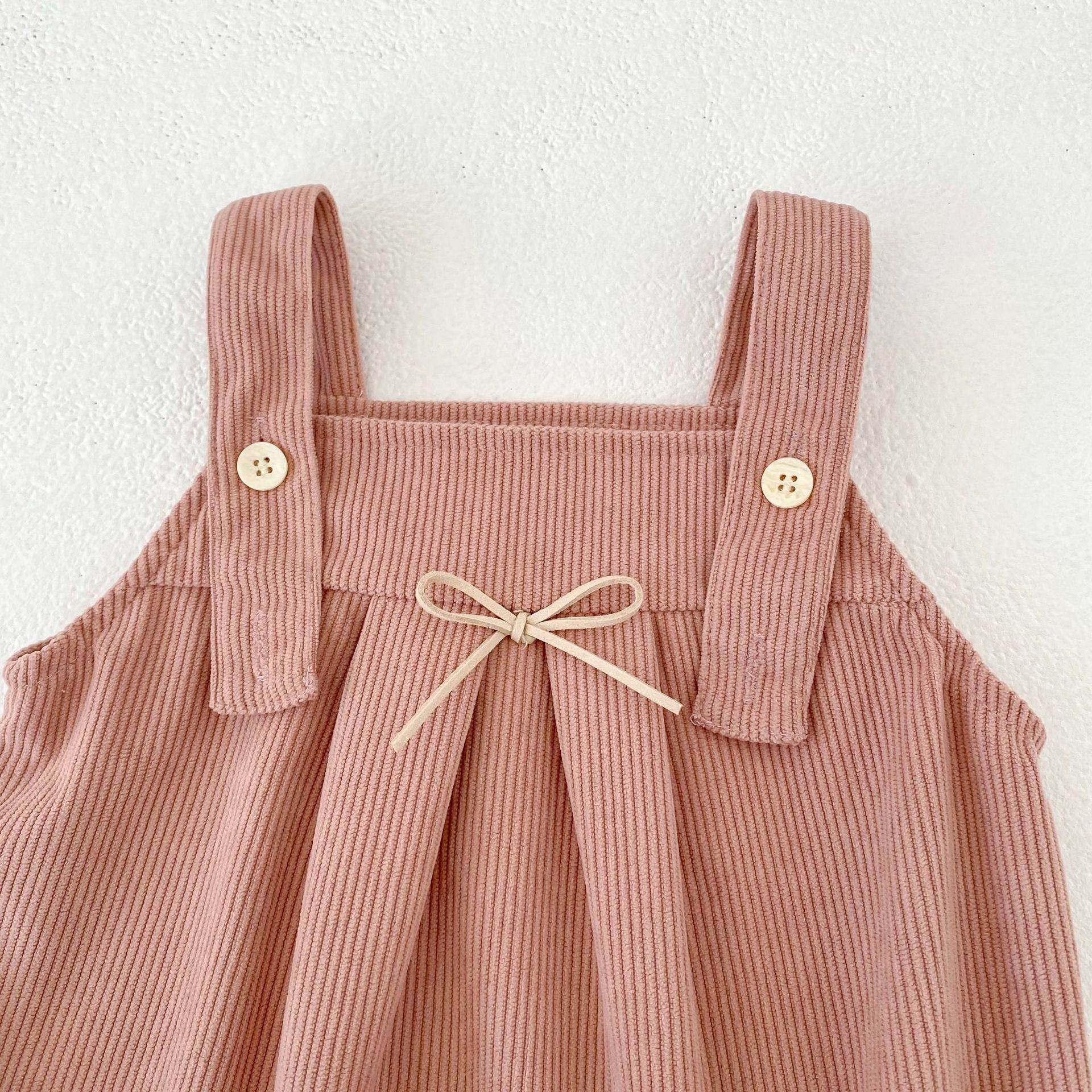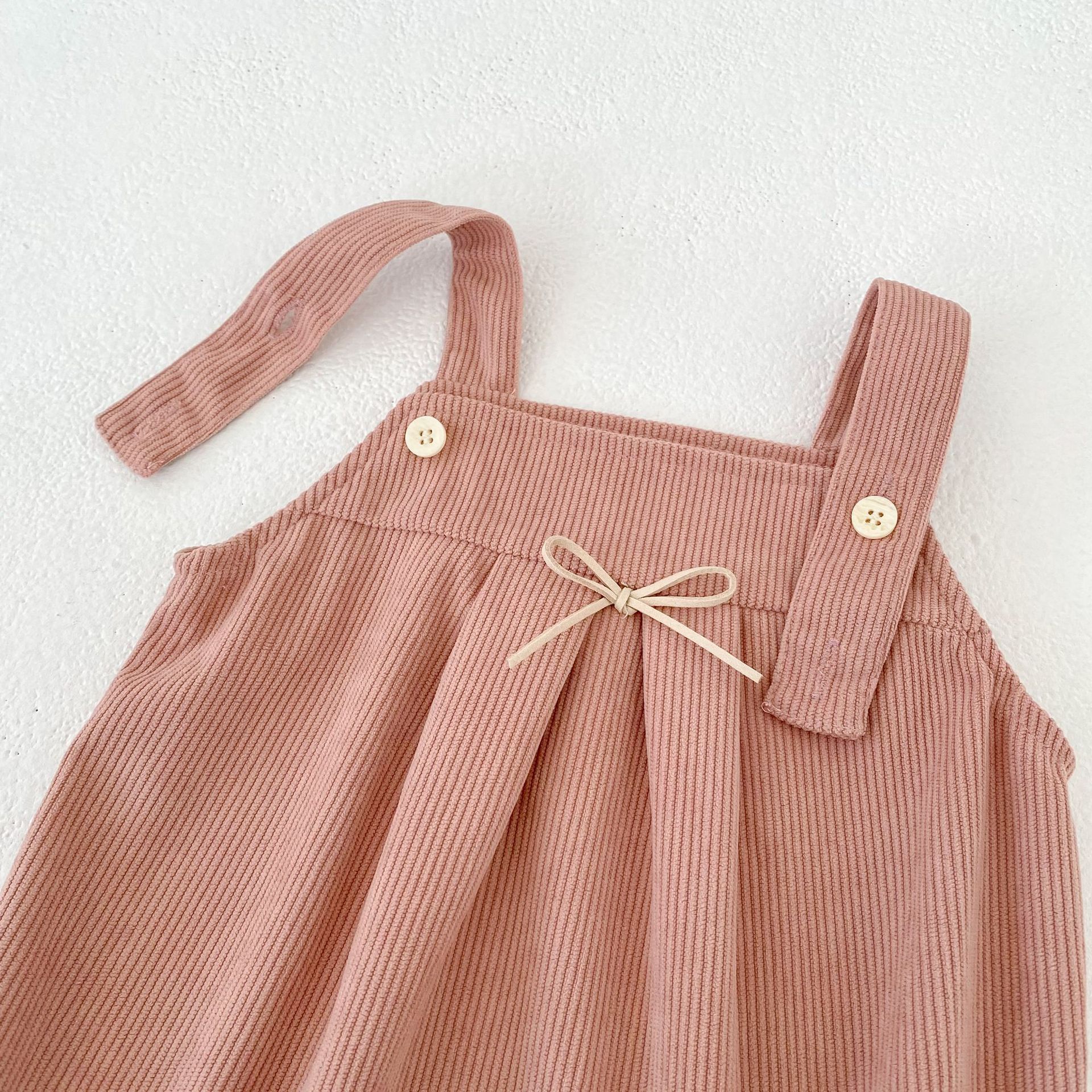 [66-100cm]サロペット ロンパース コーデュロイ リボン シンプル