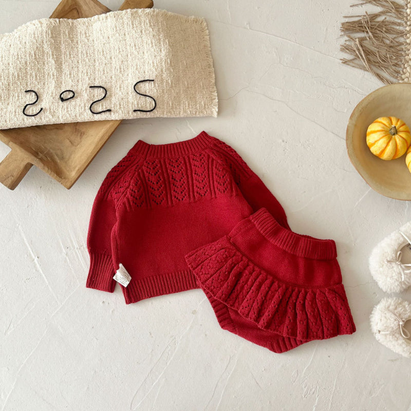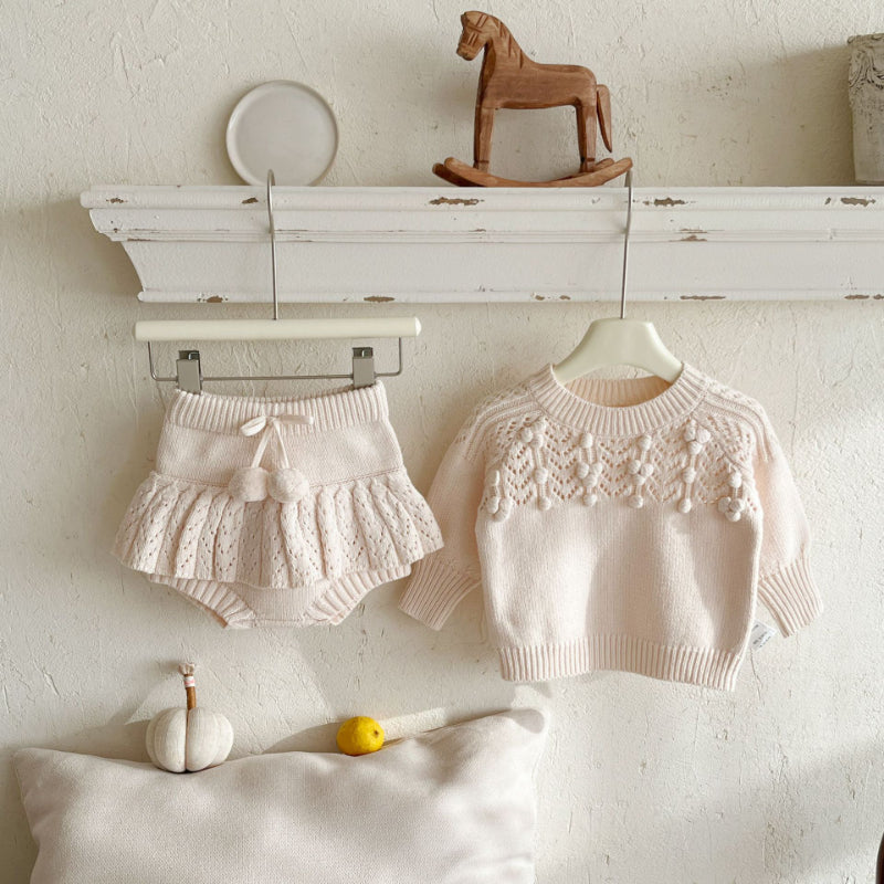 [66-100cm]手編みボール ラウンドネック ニット セットアップ