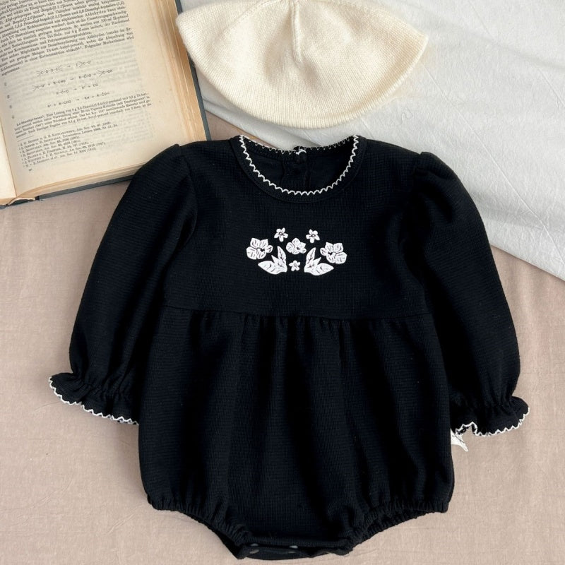 [66-100cm]韓国風 フリル プリント ロンパース