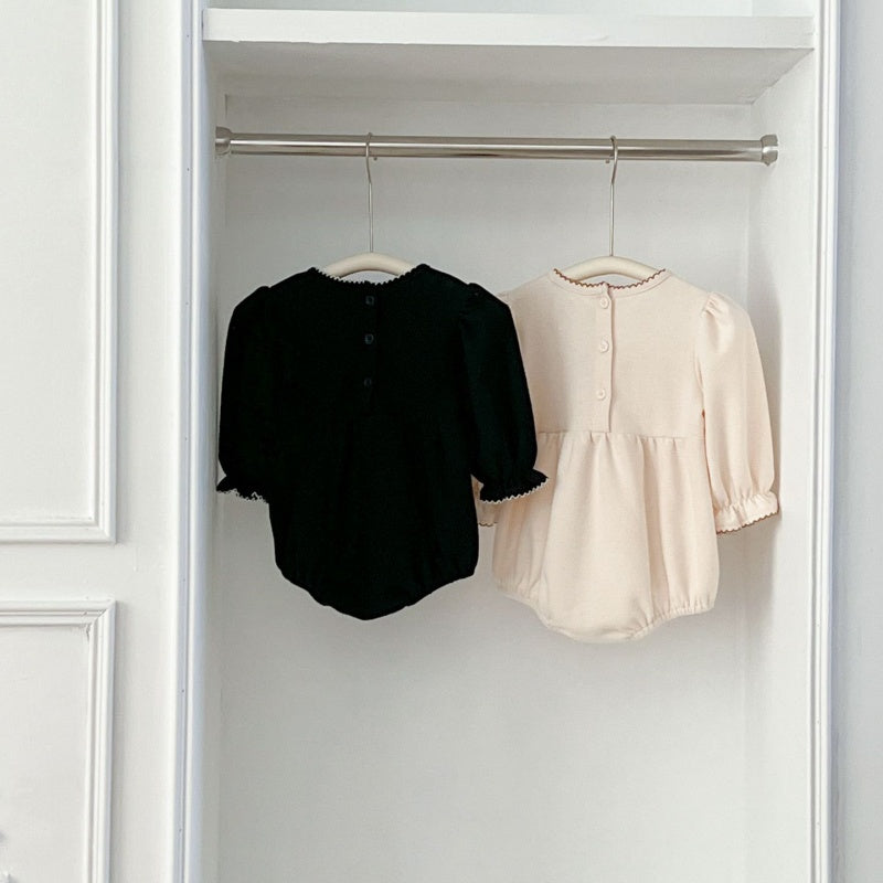 [66-90cm]ロンパース リボン レース襟 定番 肌触り良い ベビー服
