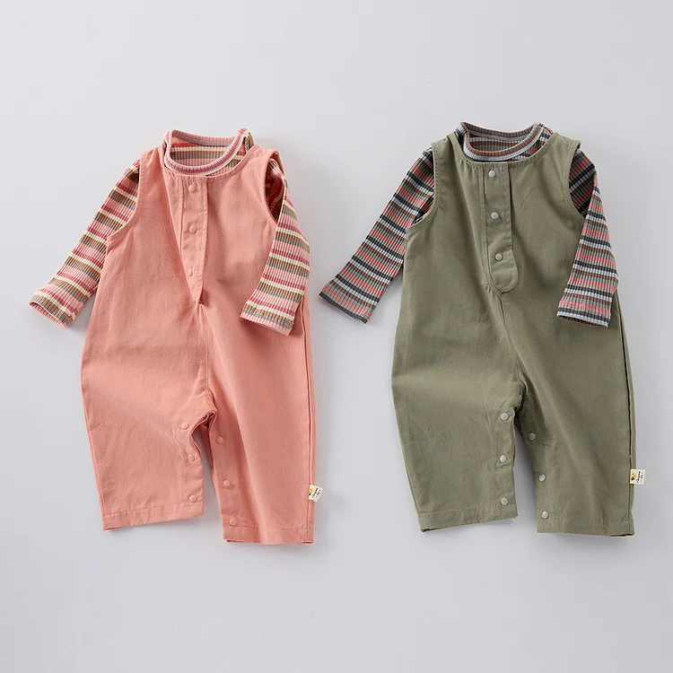 [66-100cm]サロペット ロンパース コーデュロイ リボン シンプル