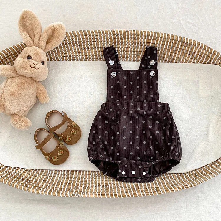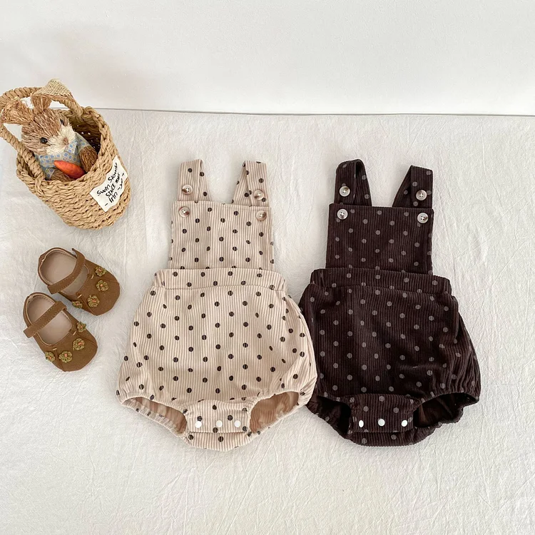 [66-100cm]サロペット ロンパース コーデュロイ リボン シンプル