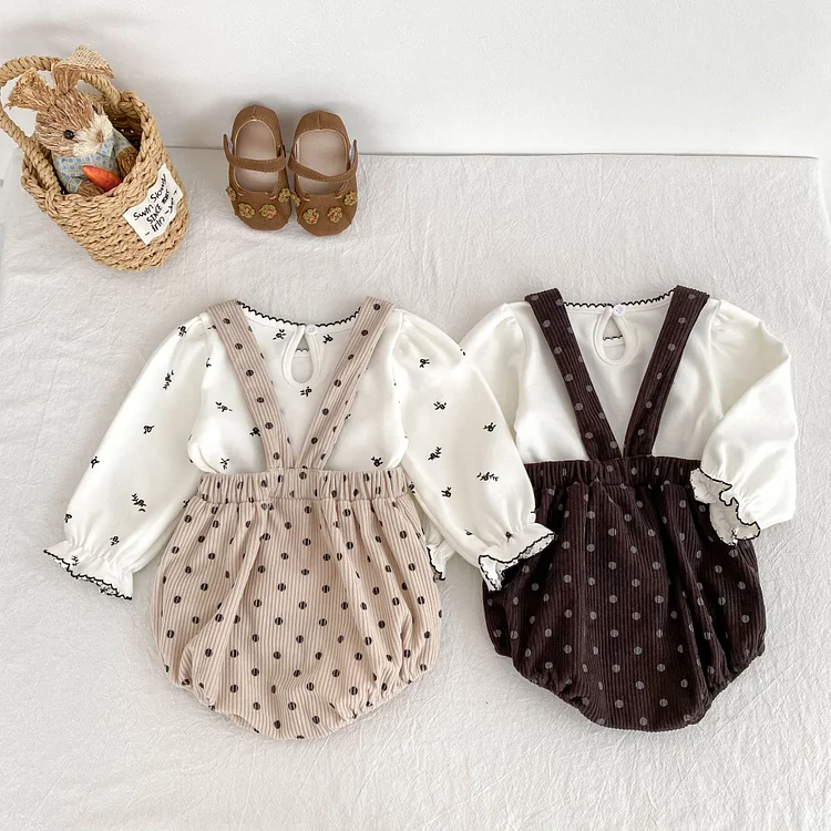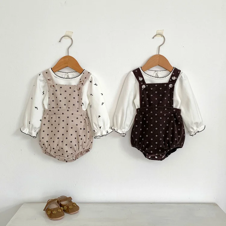 [66-100cm] ドット サロペット ロンパース or 花柄インナー シャツ