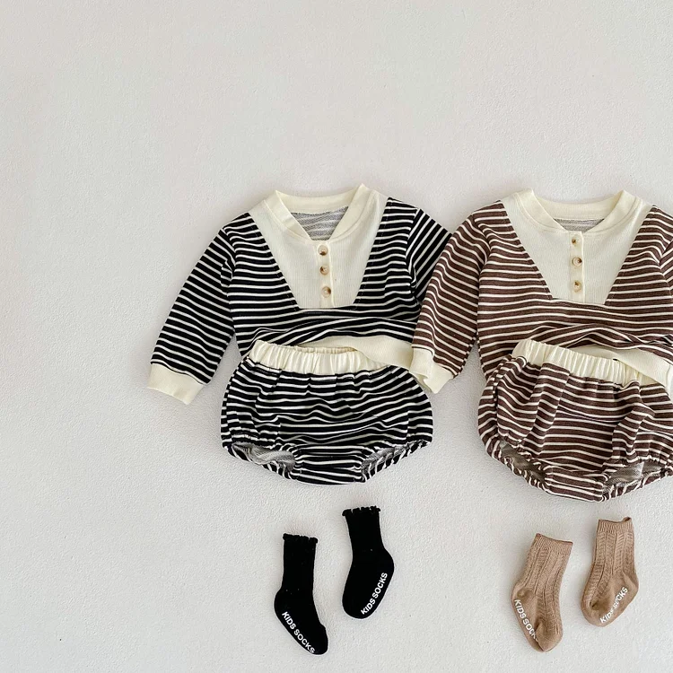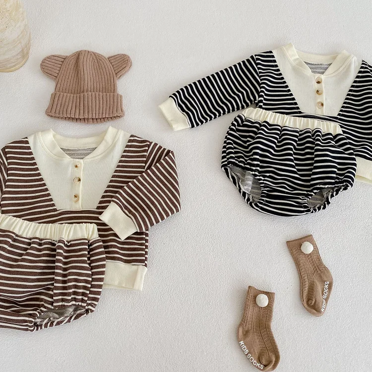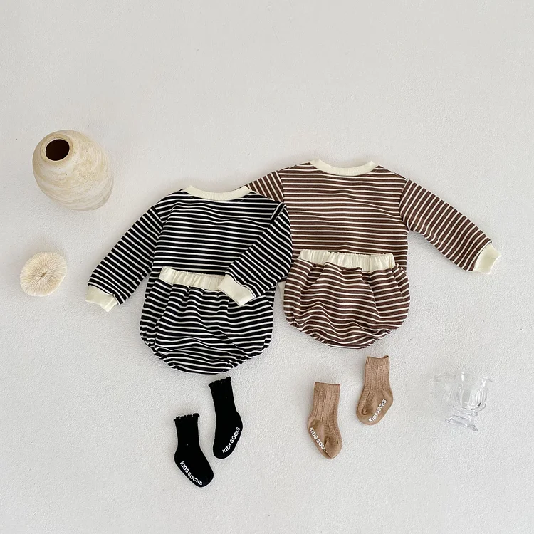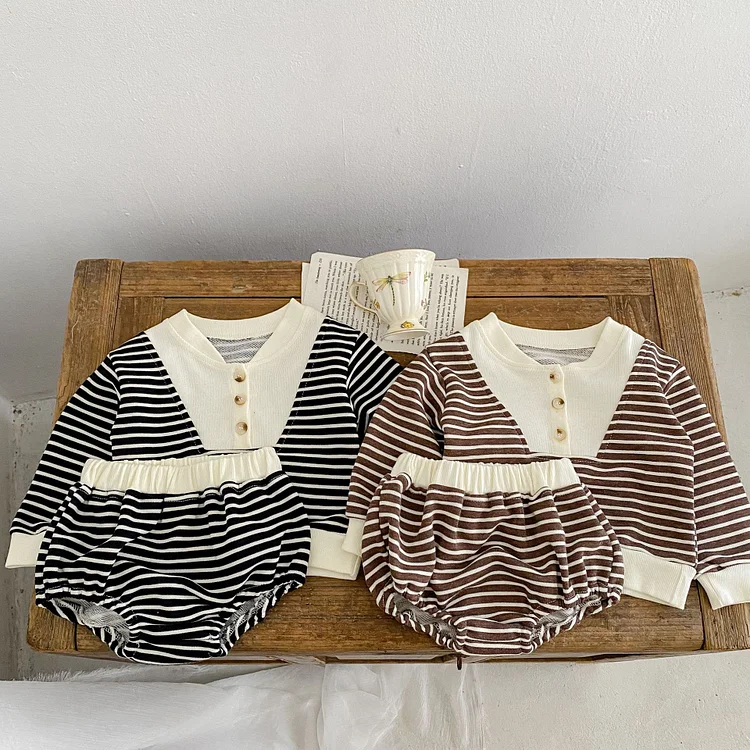 [73-120cm]おしゃれ トレンド お出かけに ボーダー柄 トップス/パンツ