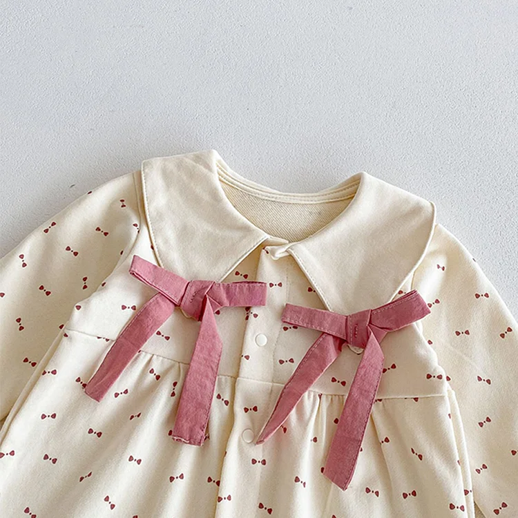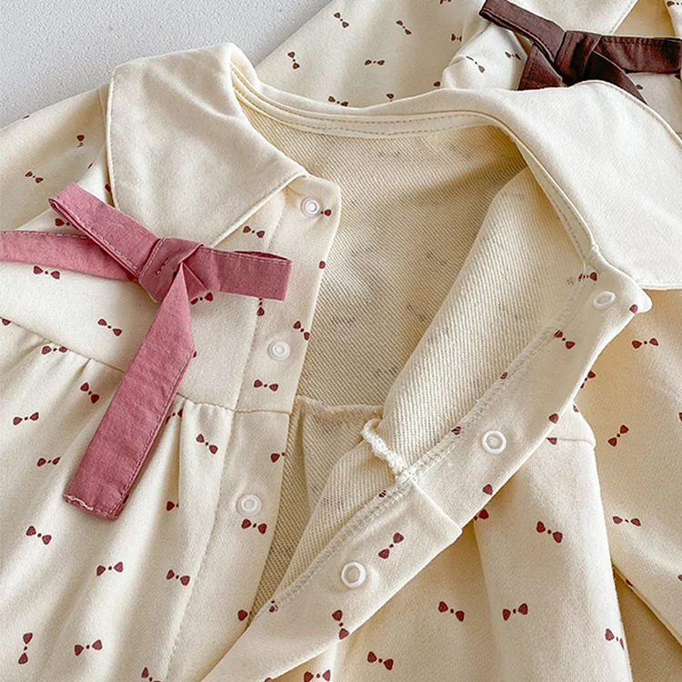 [66-140cm]ワンピース OR ロンパースレース襟リボン柄 可愛い