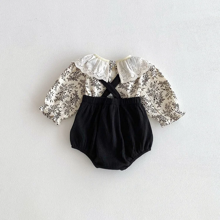 [66-100cm] レース襟 トップス & サロペット ロンパース 2点セット