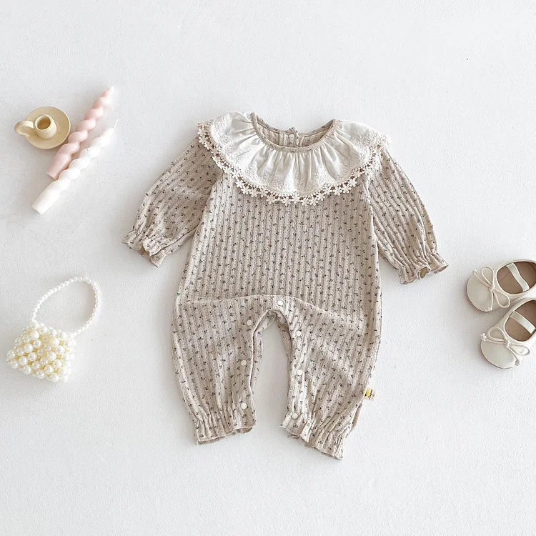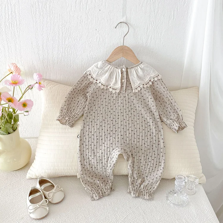 [66-100cm] レース襟 小花柄 オールインワン