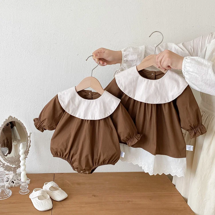 [66-100cm] 丸襟 ワンピース or ロンパース