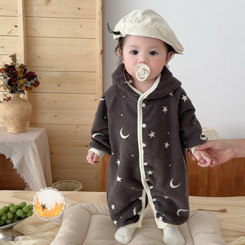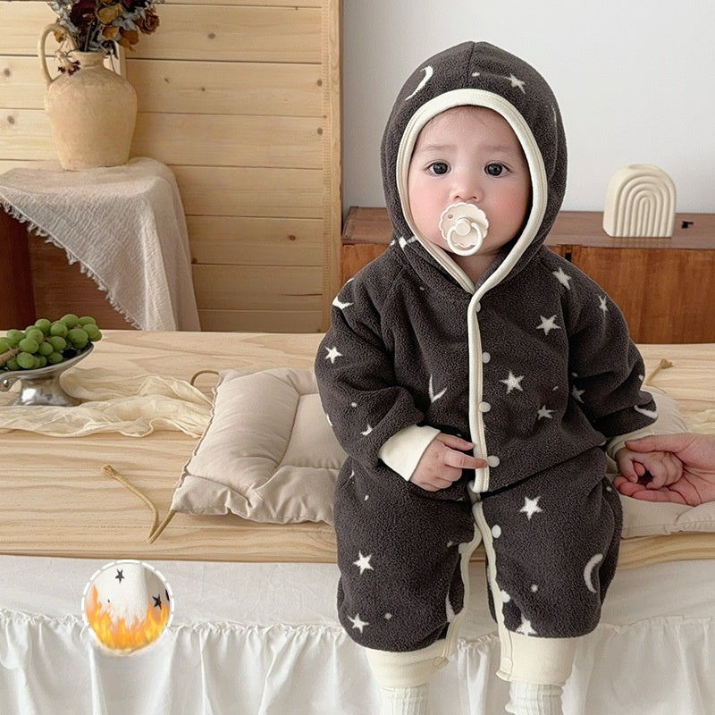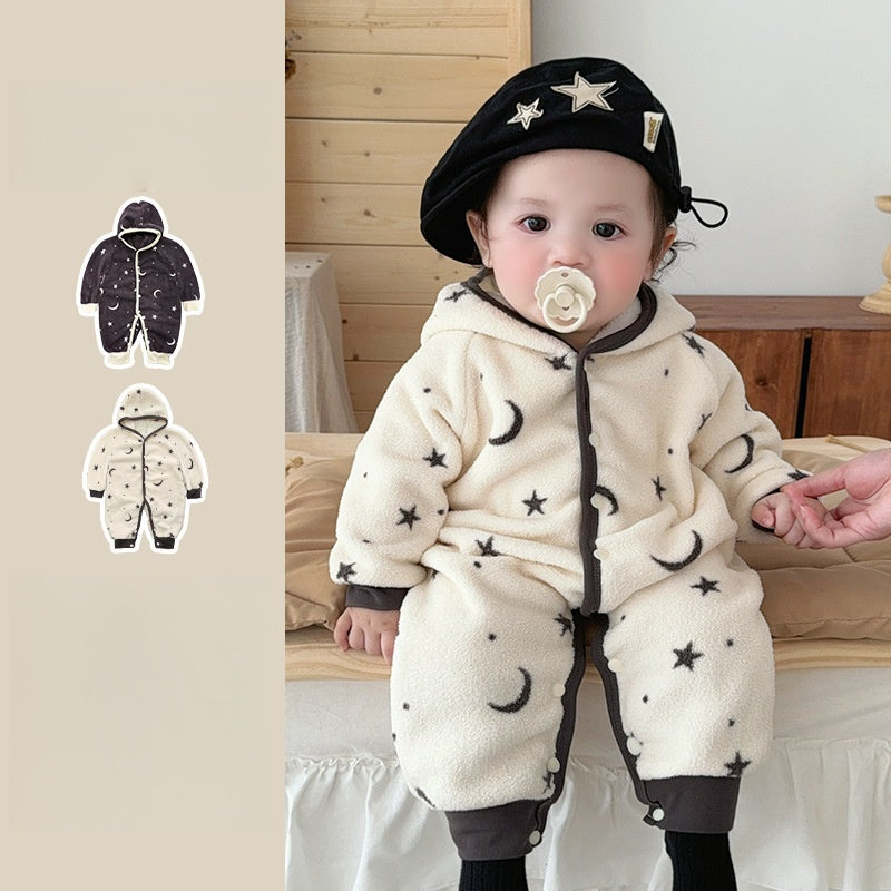 [66-100cm] 星と月柄 あったか カバーオール