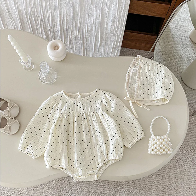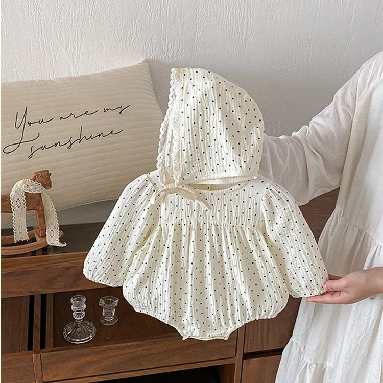 [66-110cm] ドットボンネット付き ロンパースor ワンピース