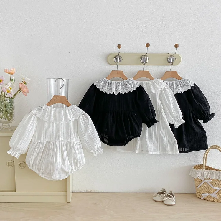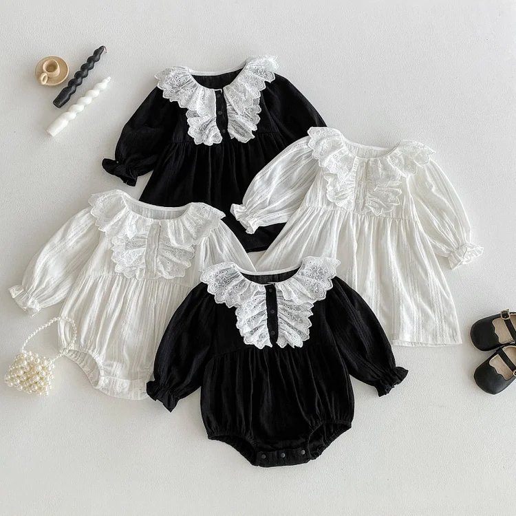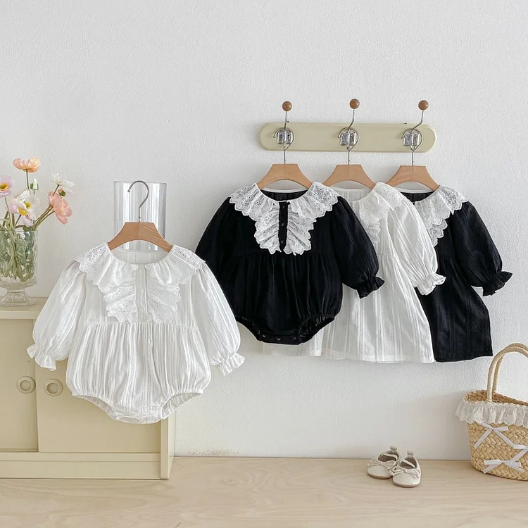 [66-110cm] レース襟 ロンパース or ワンピース