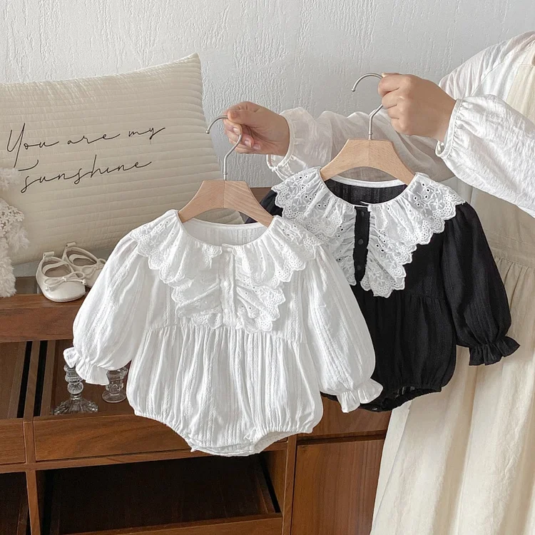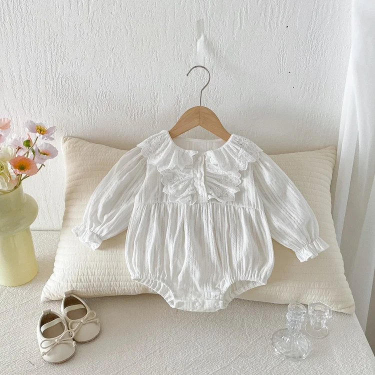 [66-100cm]ロンパース レース襟 可愛い 肌触り良い ベビー服