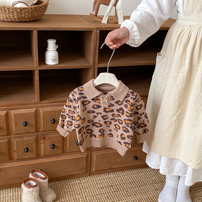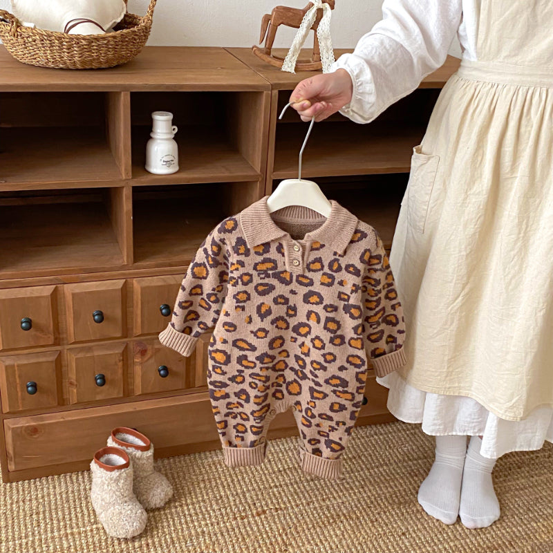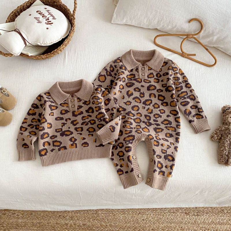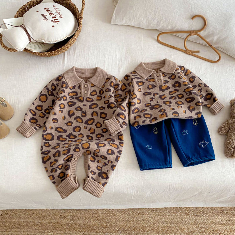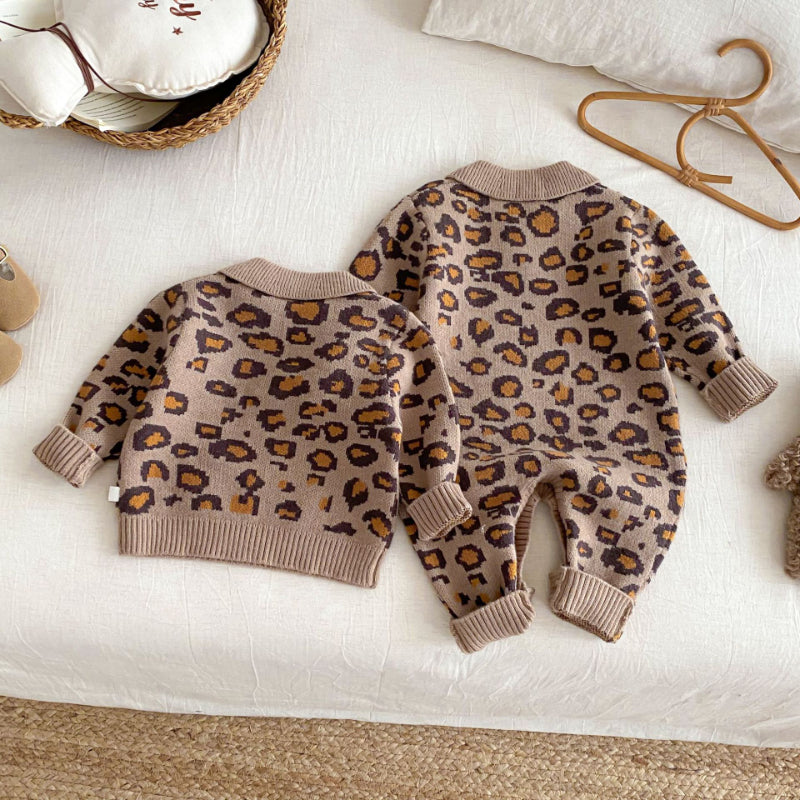 [66-120cm]レオパード ニット カバーオールorセーター