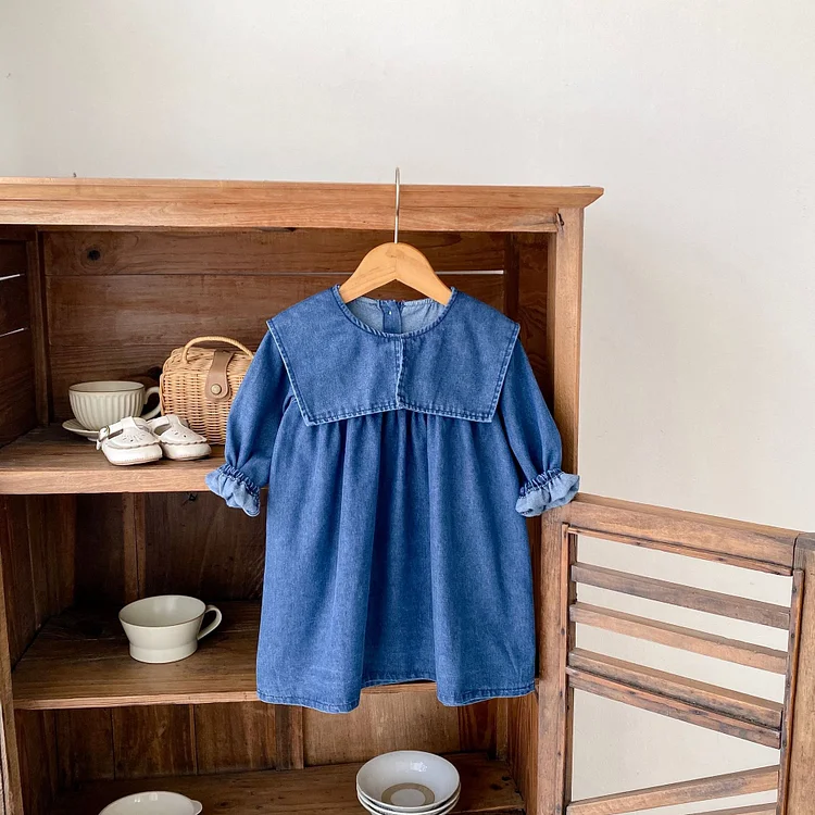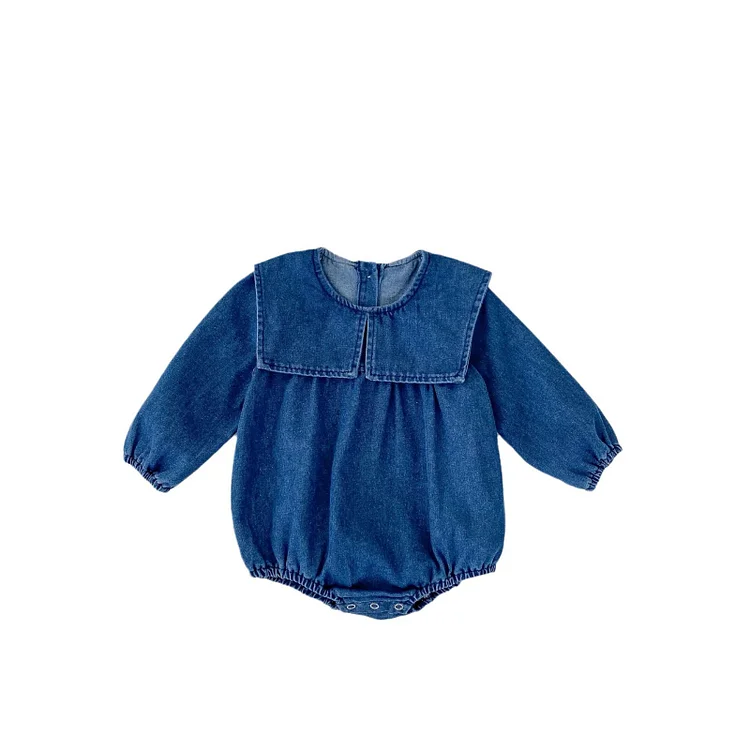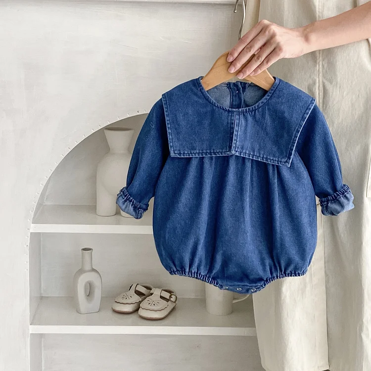 [66-120cm]ロンパースorワンピース フリル襟 デニム 姉妹服