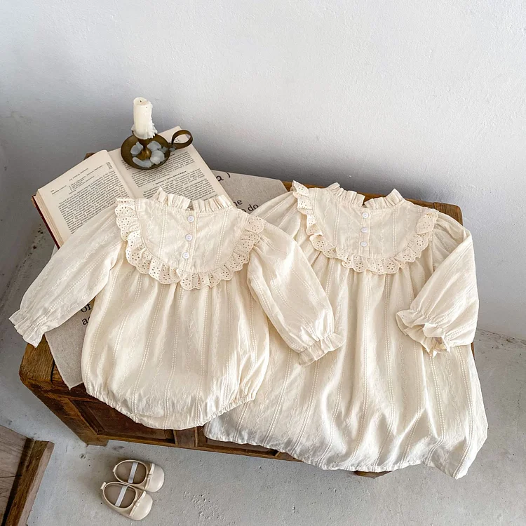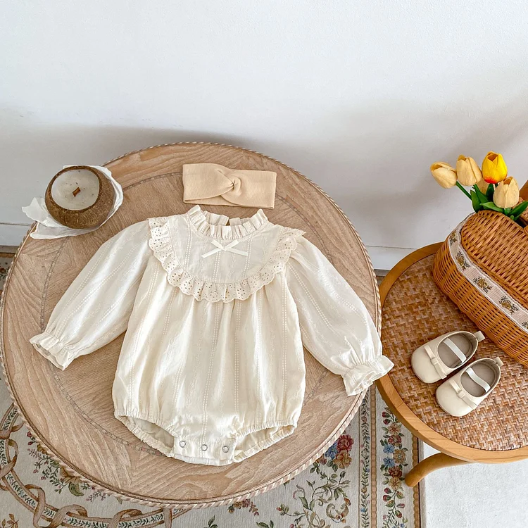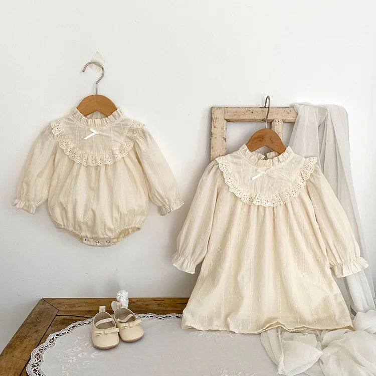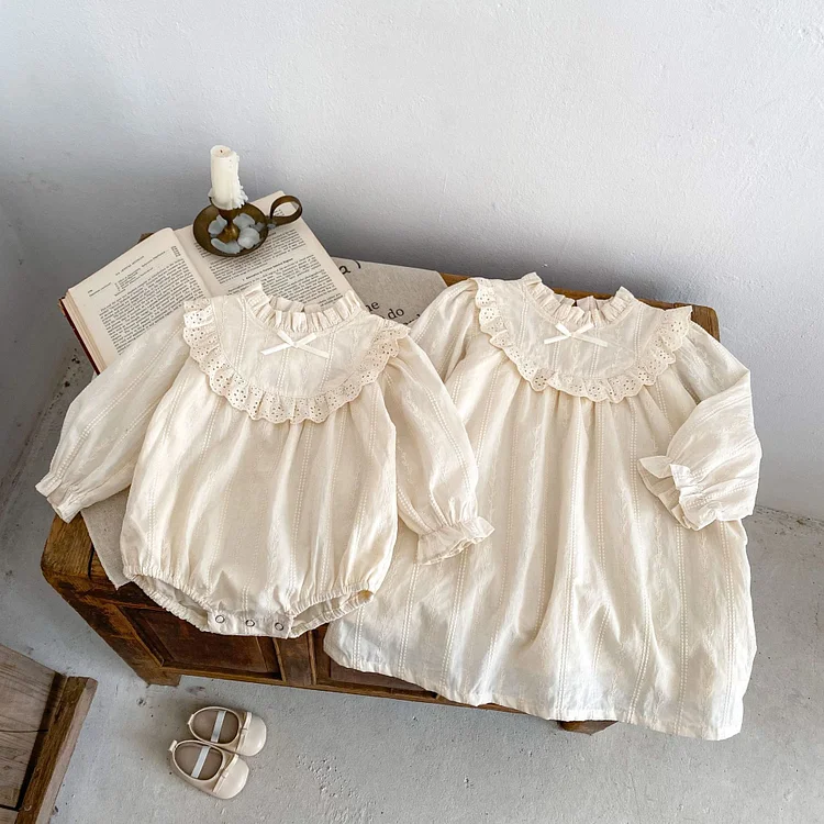 [66-130cm] リボンレース ロンパース OR ワンピース