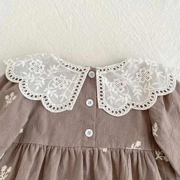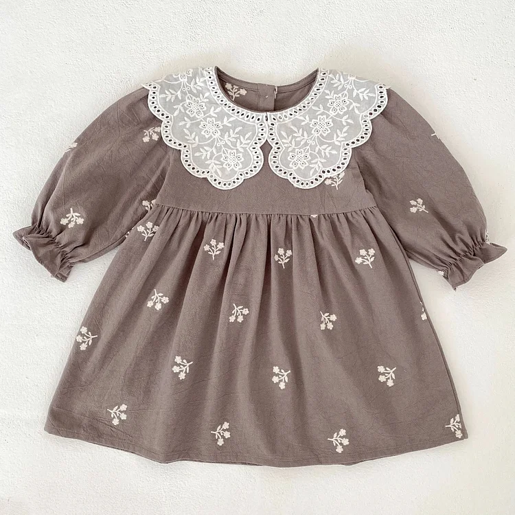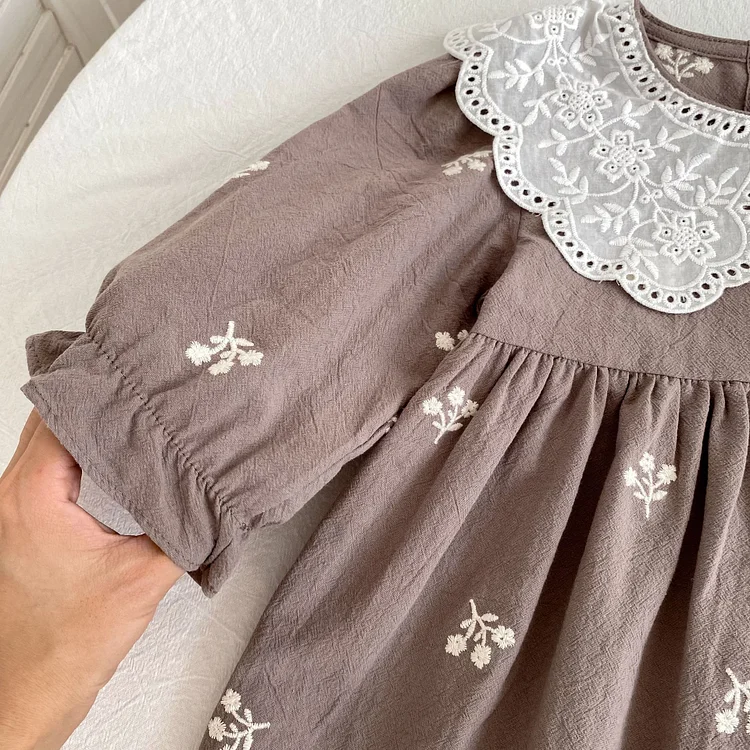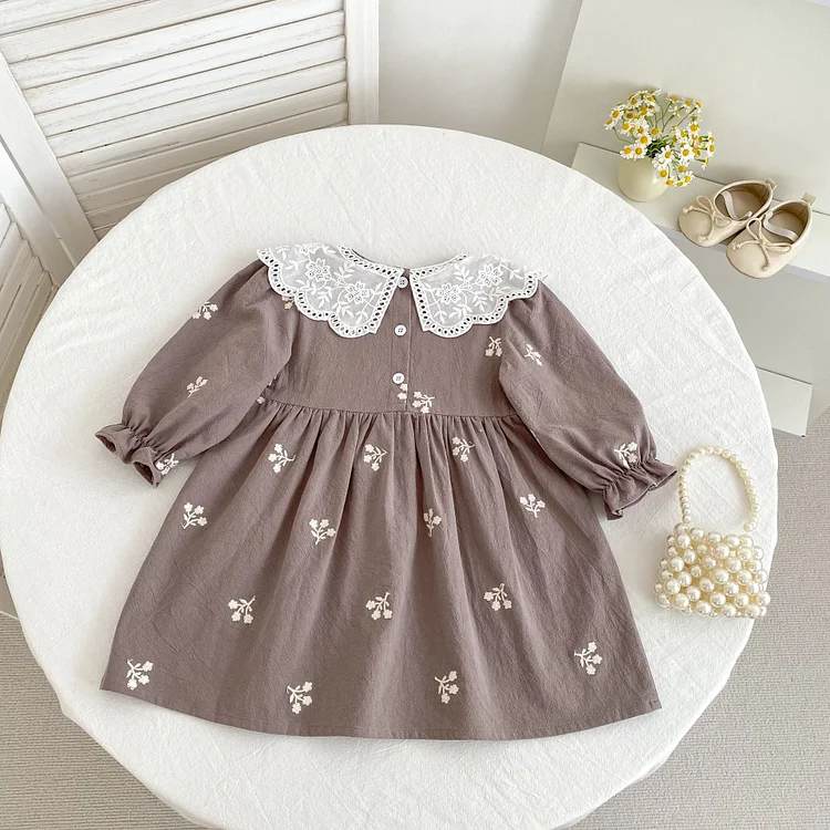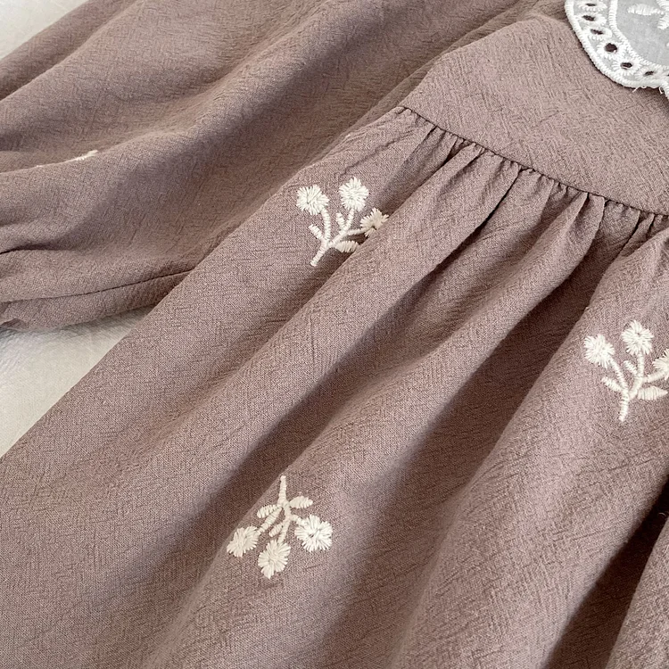 [80-130cm] 花刺繡 ワンピース