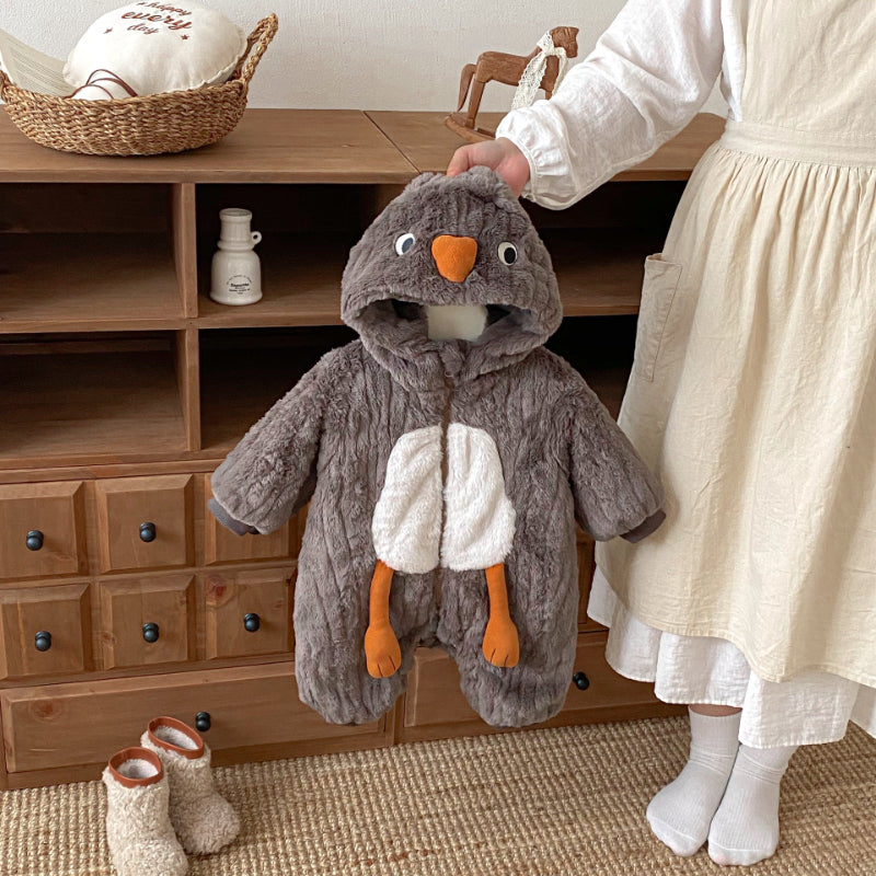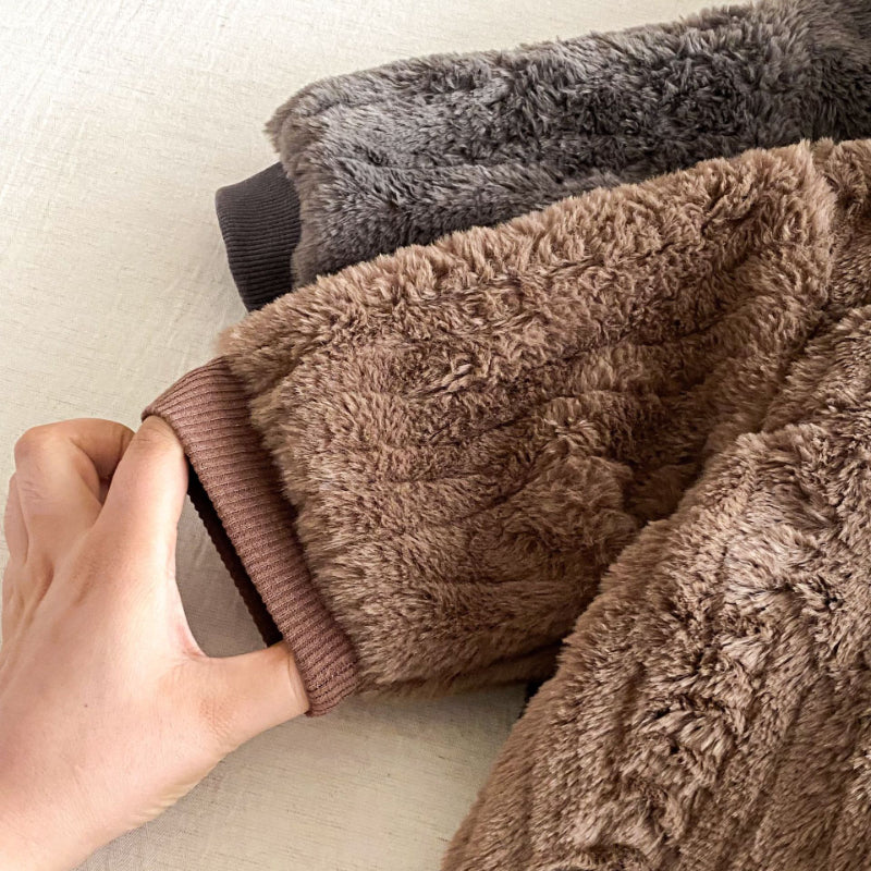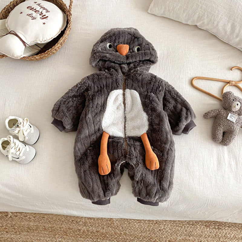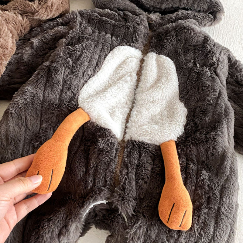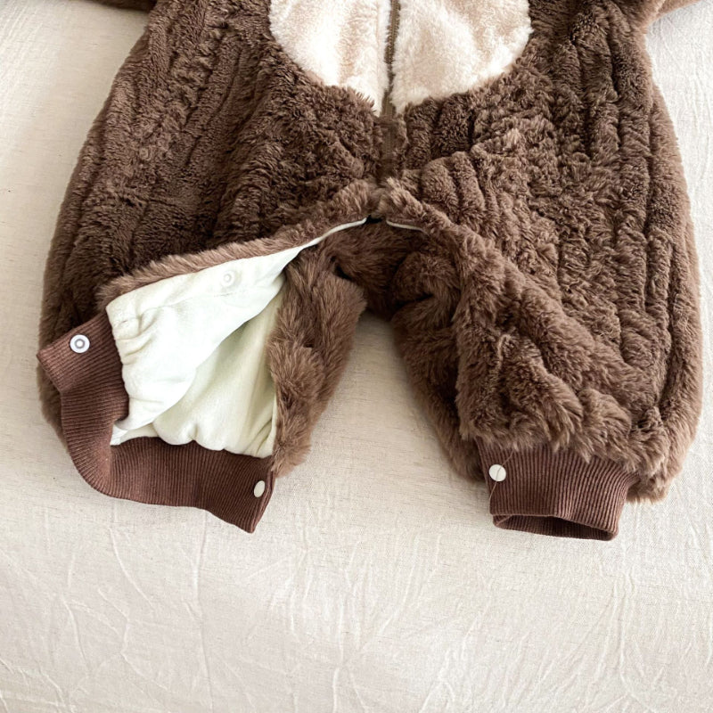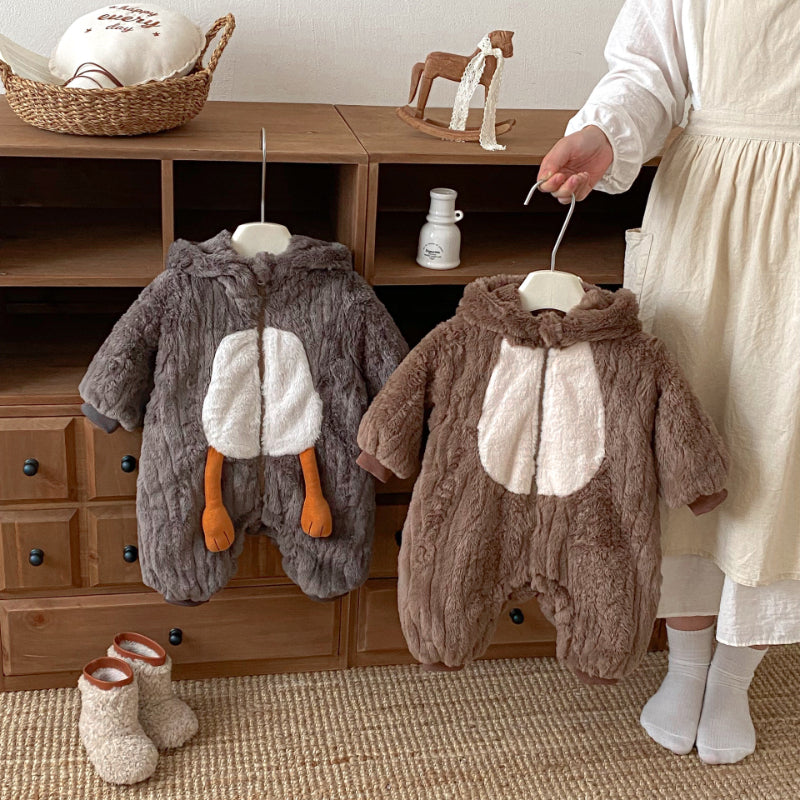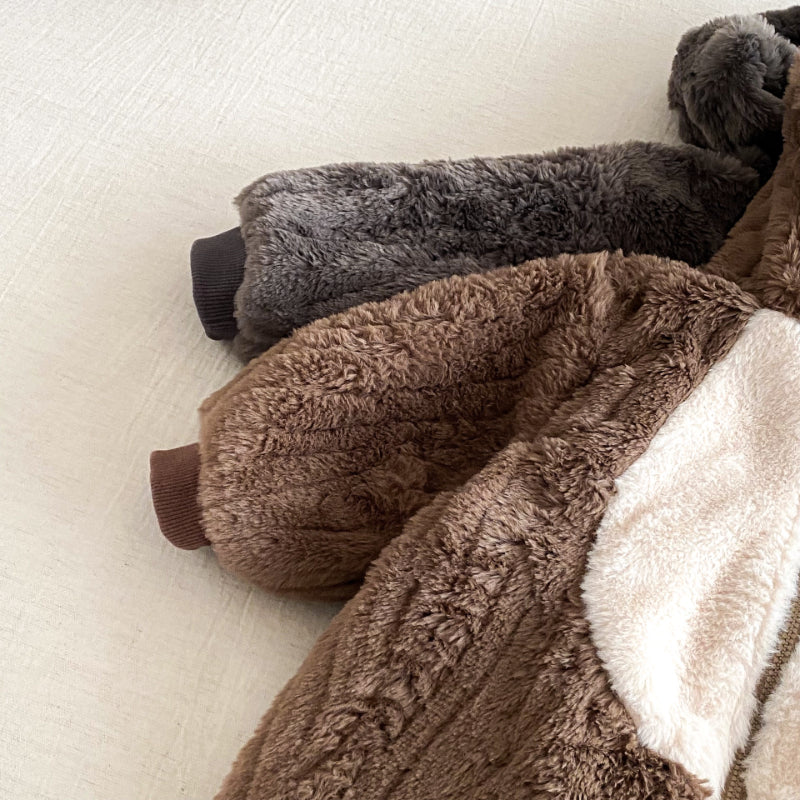 [66-90cm] 北欧風ボア風 ダブル ジップカバーオール