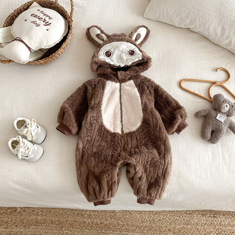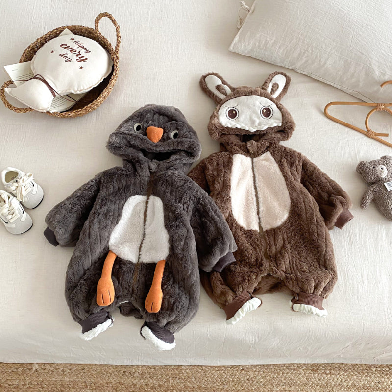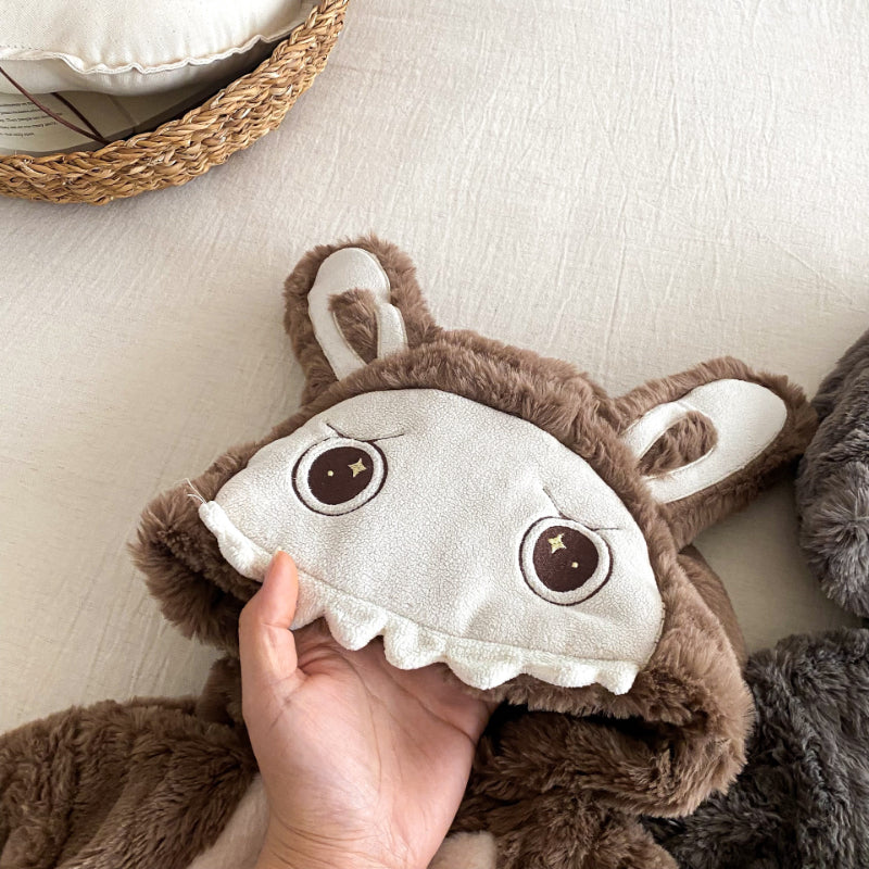 [66-90cm]うさぎ ファー風 フード 裏起毛 カバーオール