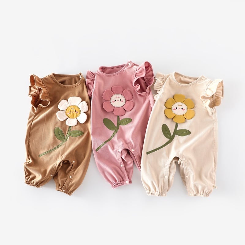 [66-90cm]オールインワン フラワー ノースリーブ おしゃれ ベビー服