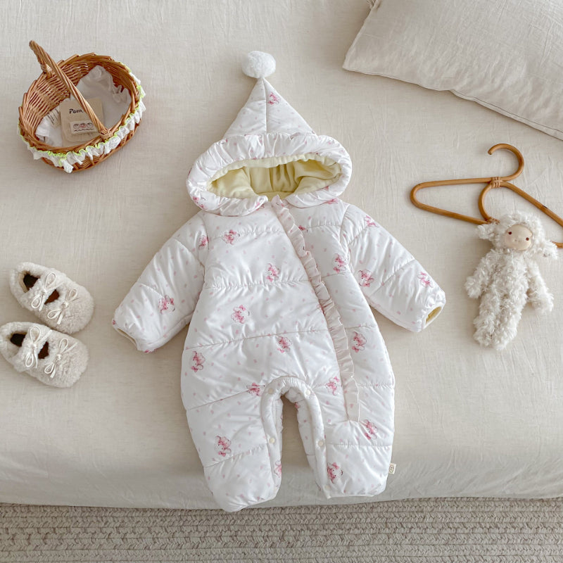 [66-90cm]カートゥン フード キルティング カバーオール