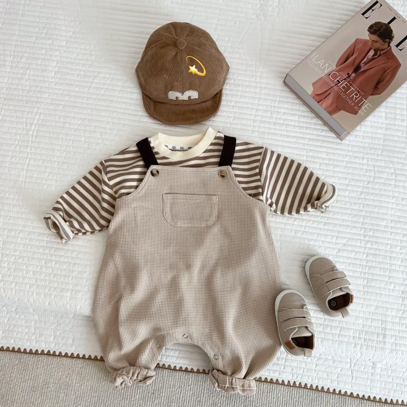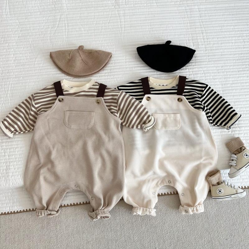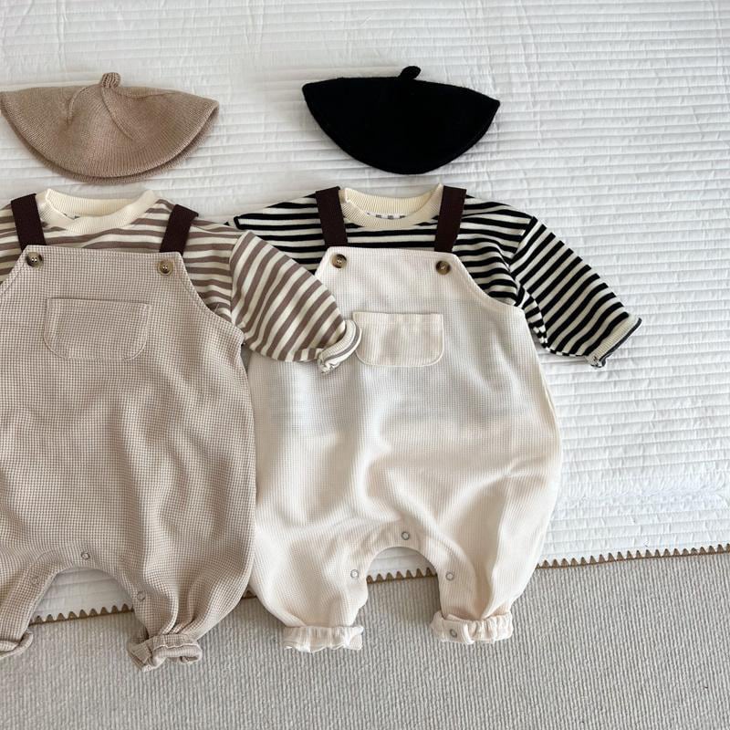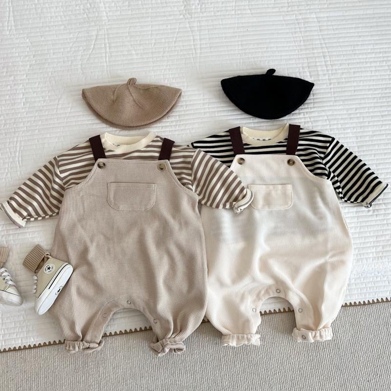 [66-100cm]サロペット ロンパース コーデュロイ リボン シンプル