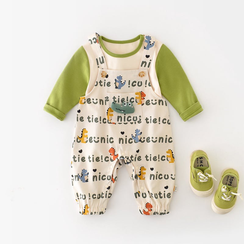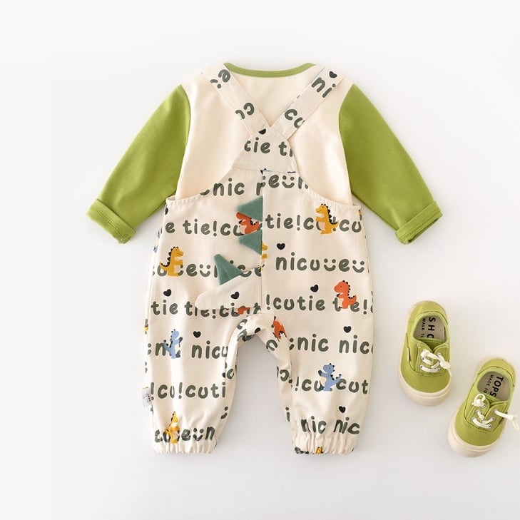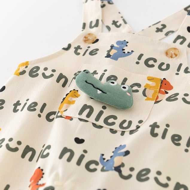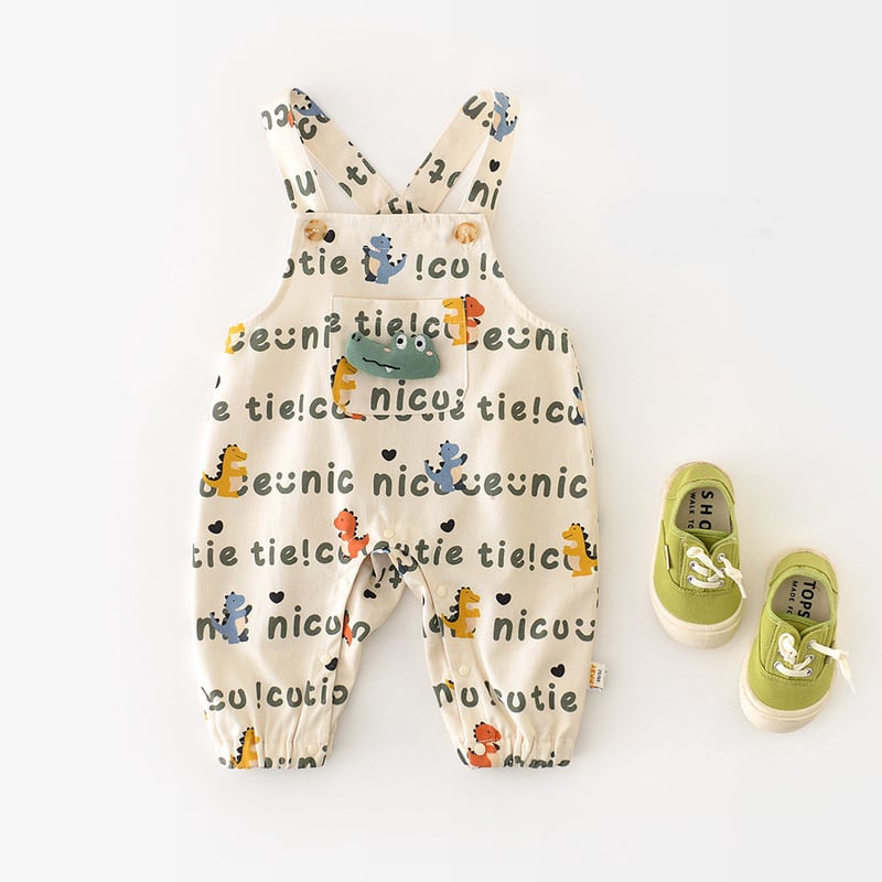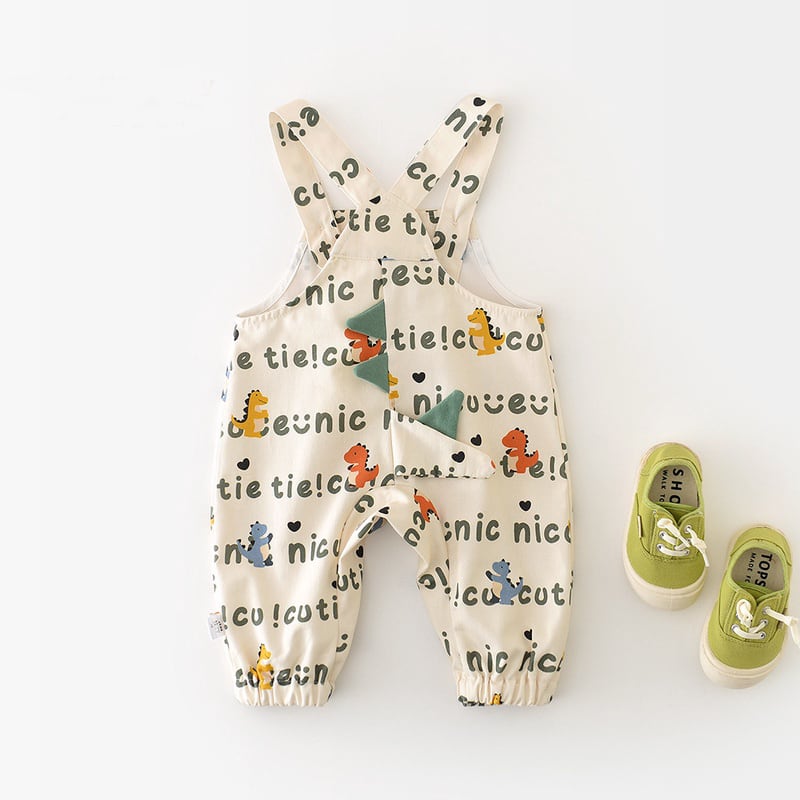 [66-90cm]サロペット 総柄恐竜 カジュアル 履きやすい トレンド ボトムス