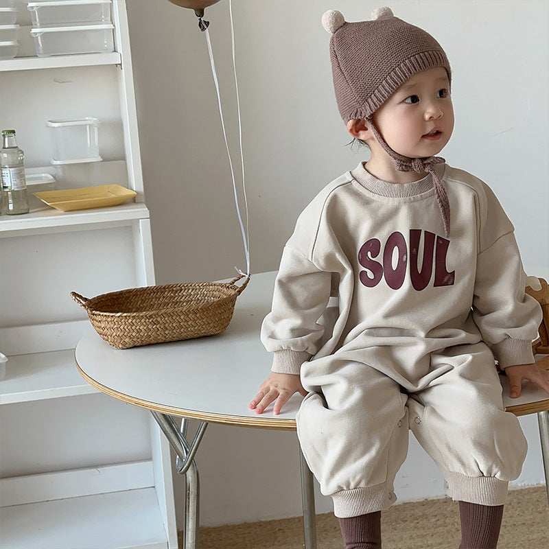 [66-90cm]シンプルな英字 カジュアル ロンパース