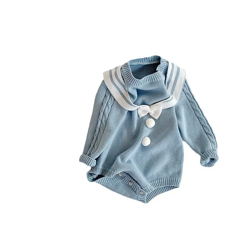 [66-90cm]セーラー風 ニット ロンパース