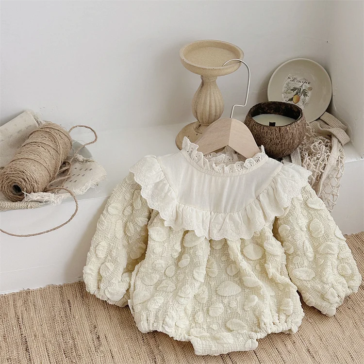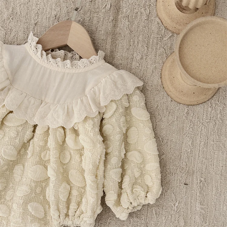 [66-100cm]ロンパース レース襟 可愛い 肌触り良い ベビー服