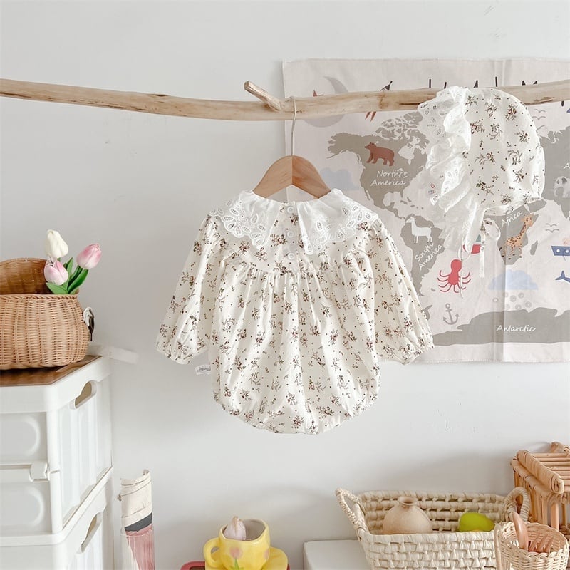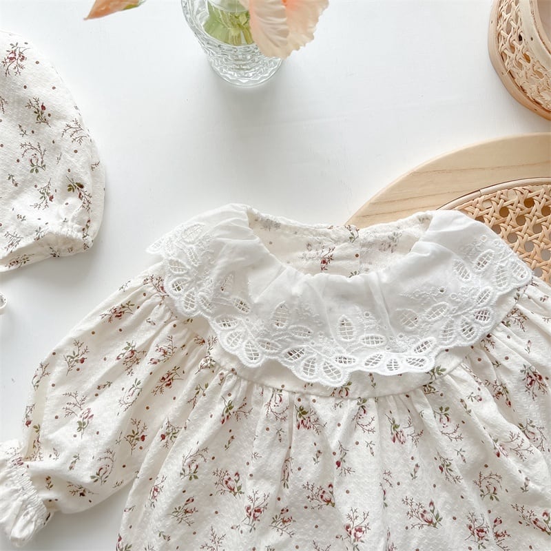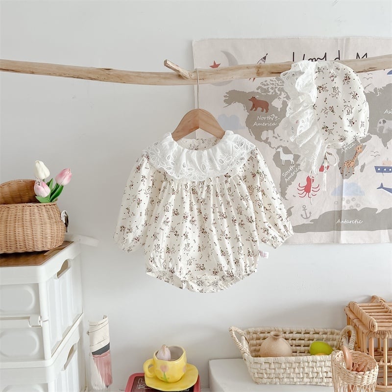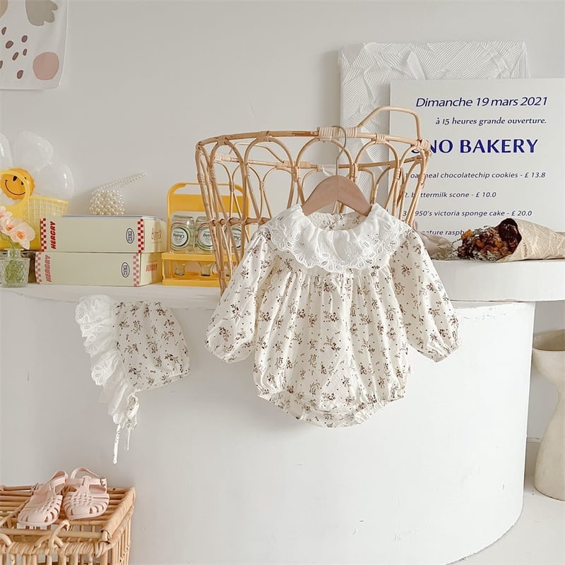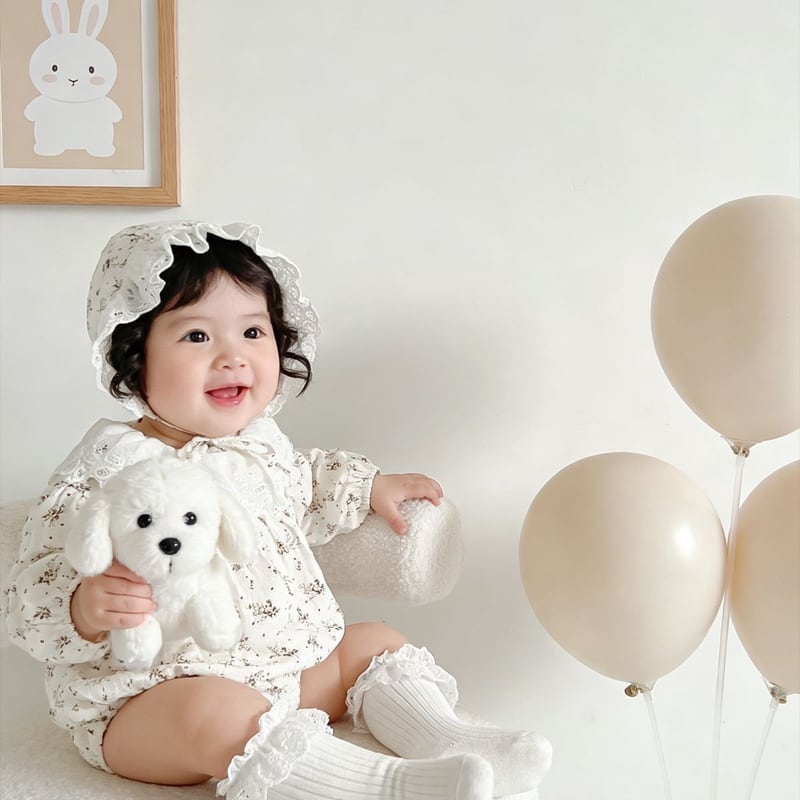 [66-90cm]ロンパース&帽子 レース おしゃれ 肌に優しい ベビー服