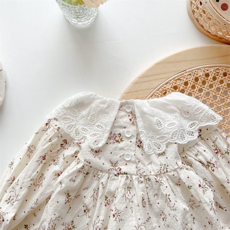[66-140cm]ワンピース OR ロンパースレース襟リボン柄 可愛い