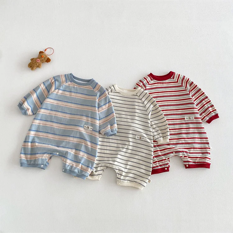[66-90cm]ロンパース オールインワン ボーダー ベビー服