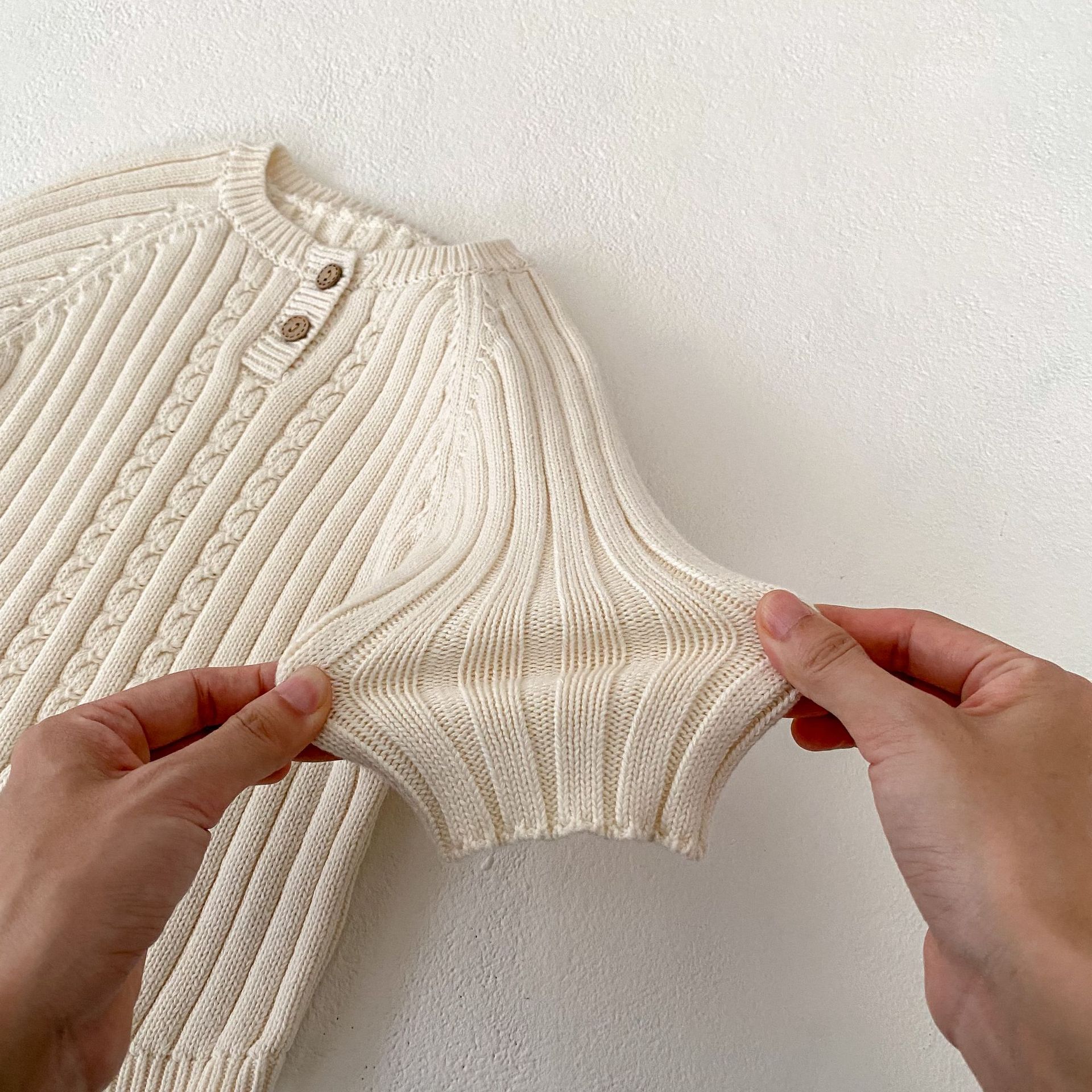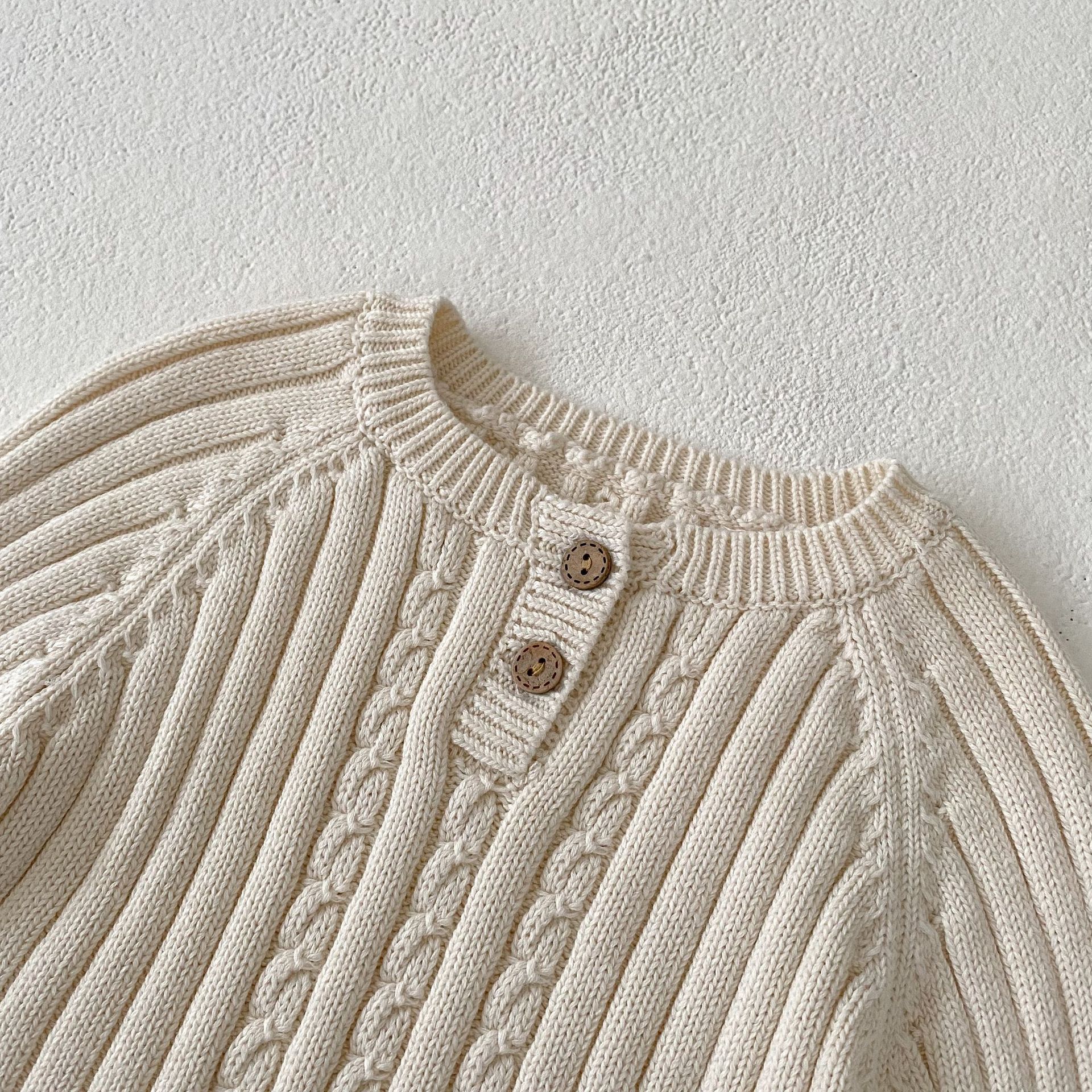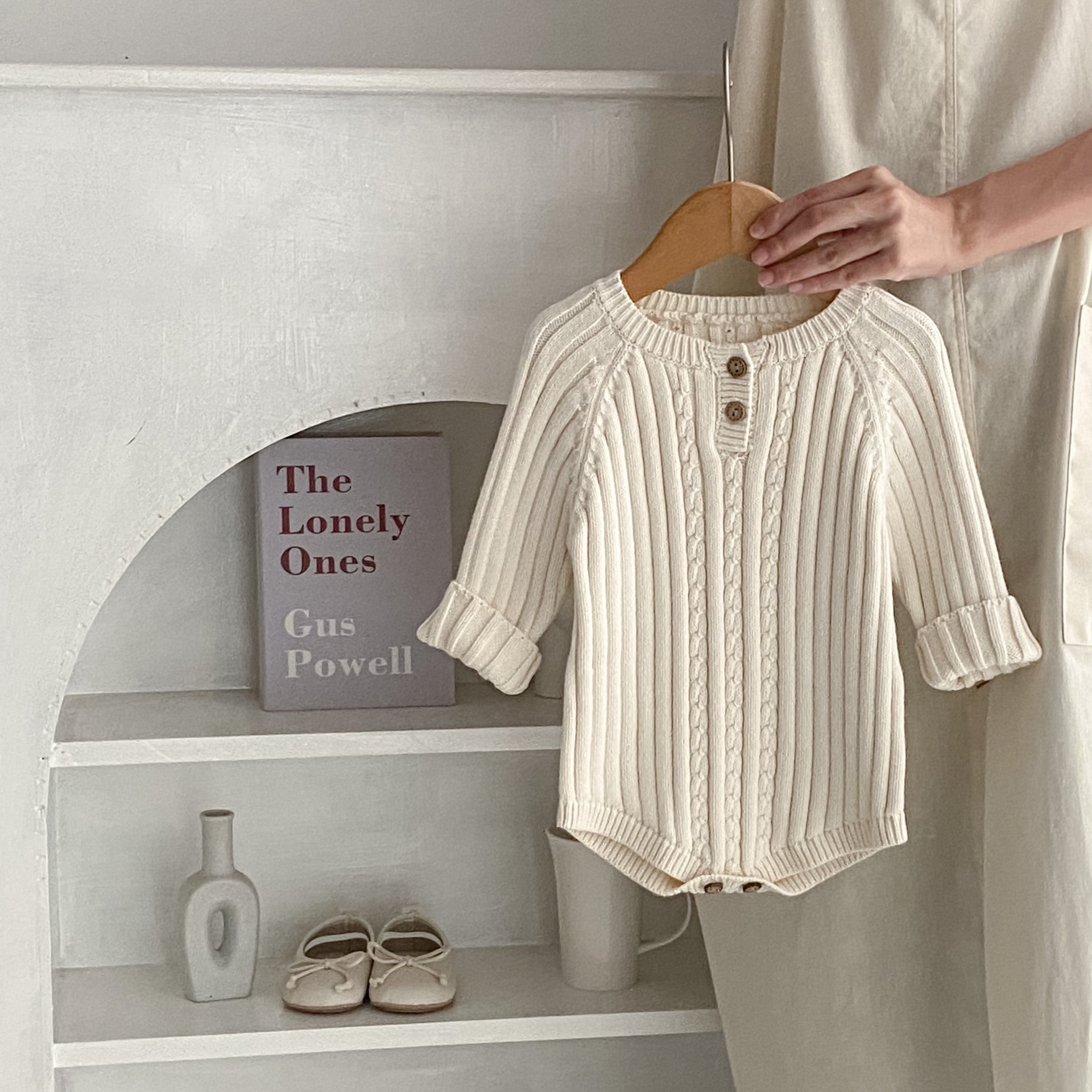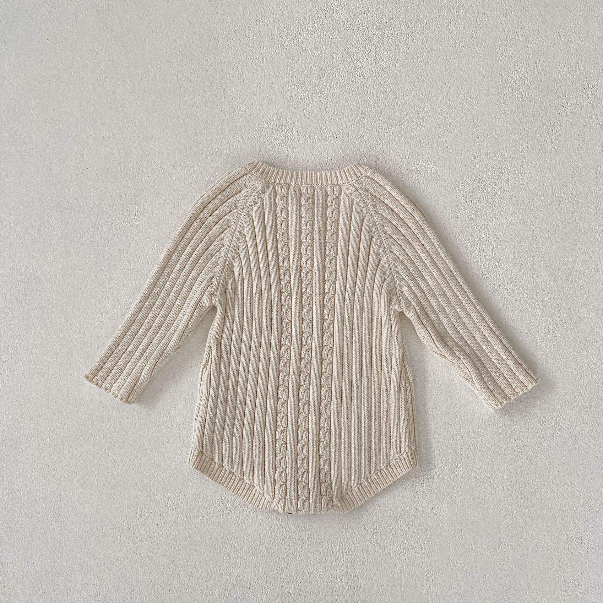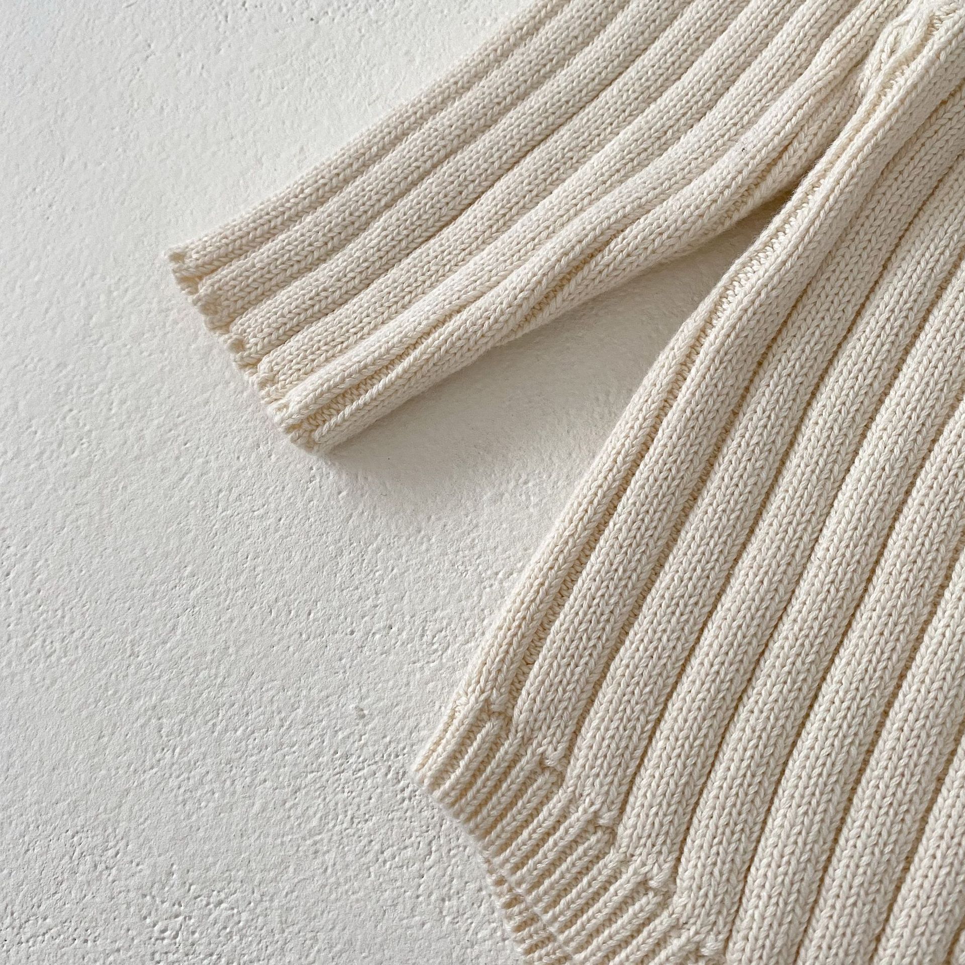 [66-90cm]ロンパース ベビー ニット 無地 ナチュラル