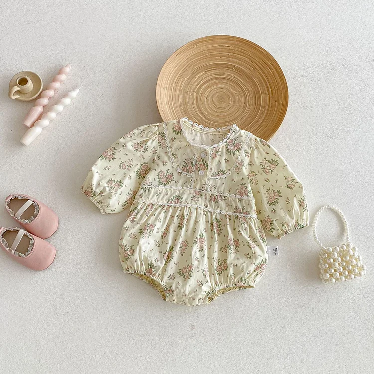 [66-90cm]ロンパース 小花柄 可愛い 肌に優しい ベビー服