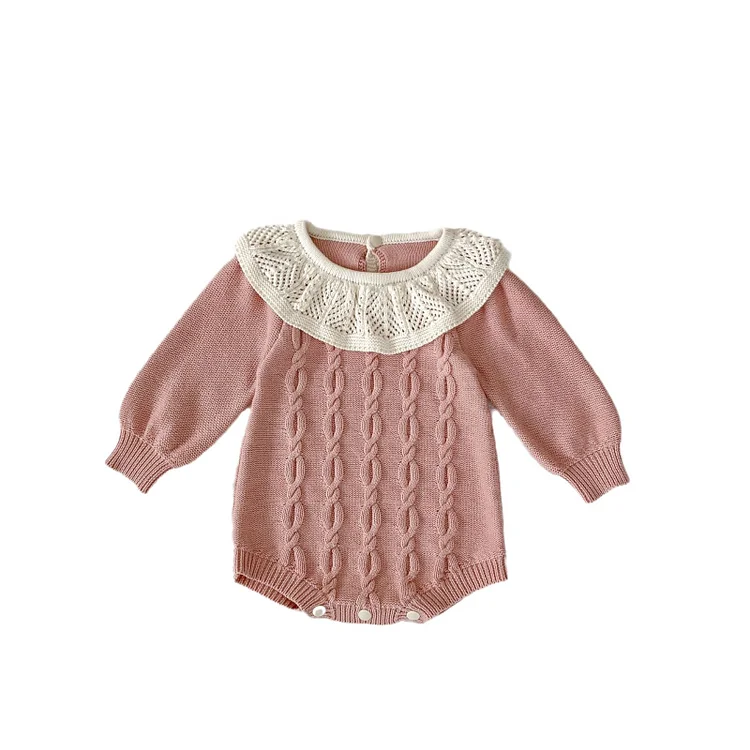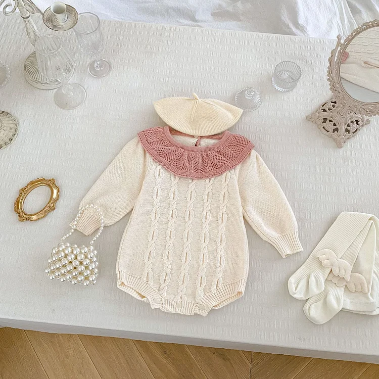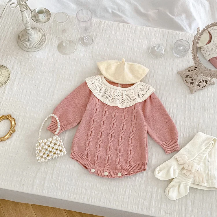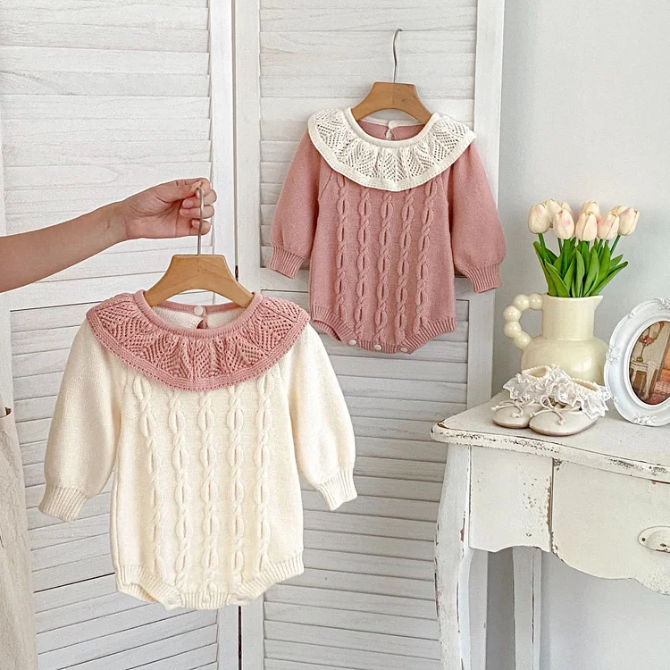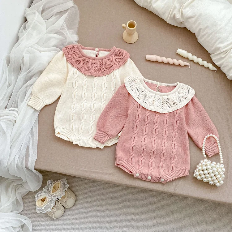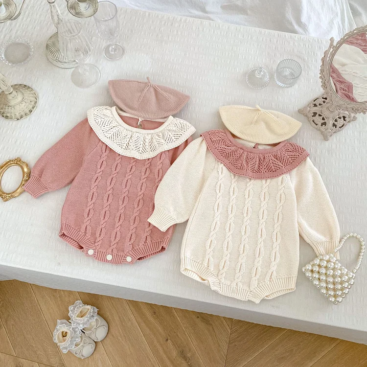 [66-90cm]丸襟 ケーブル ニット ロンパース