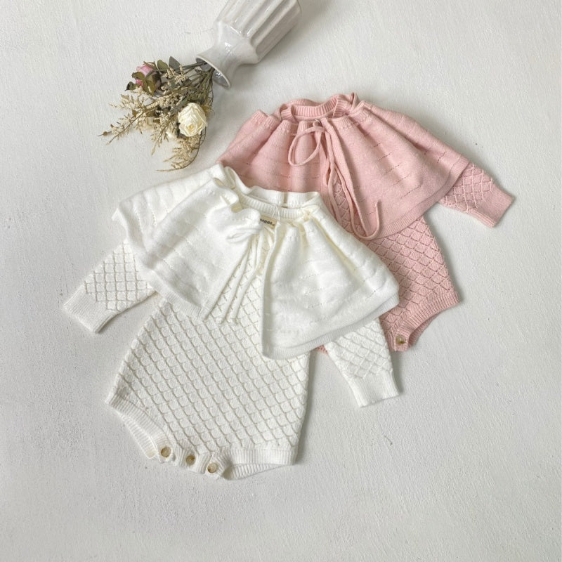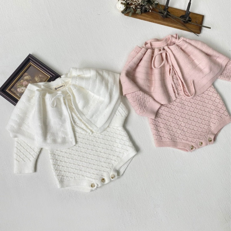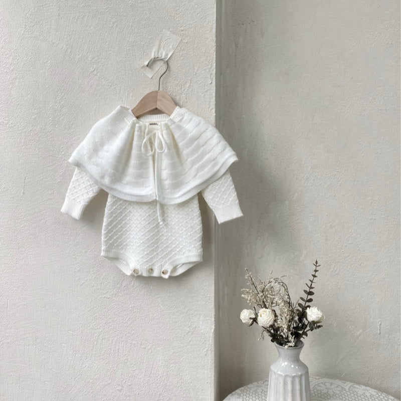 [66-90cm]透かし編み ロンパース&取り外しケープ