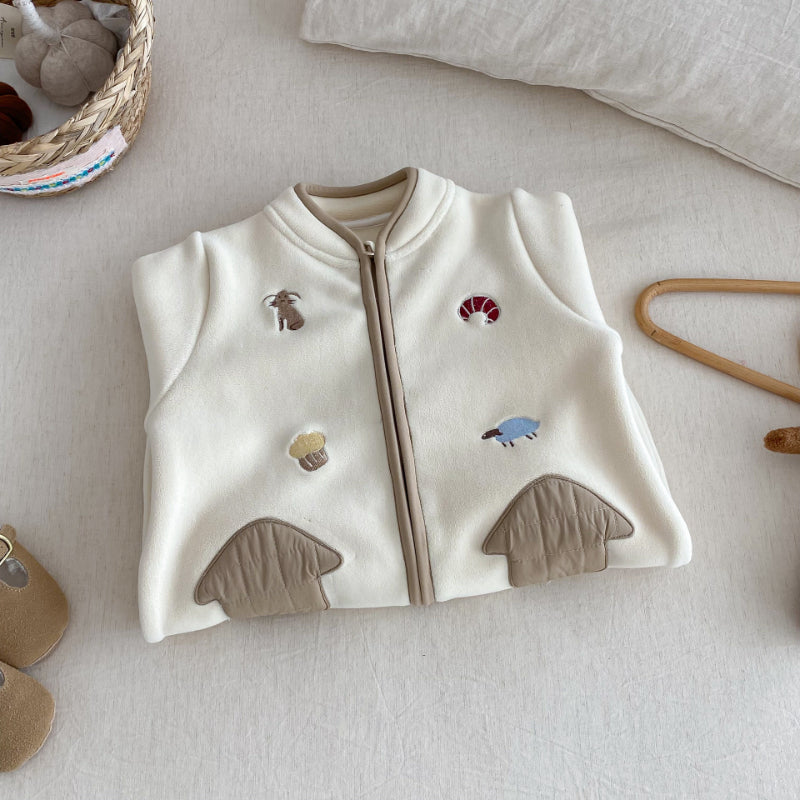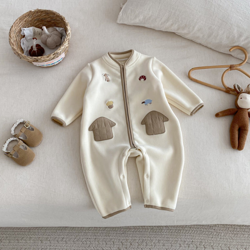 [66-90cm] 刺繍入り 中綿 カバーオール