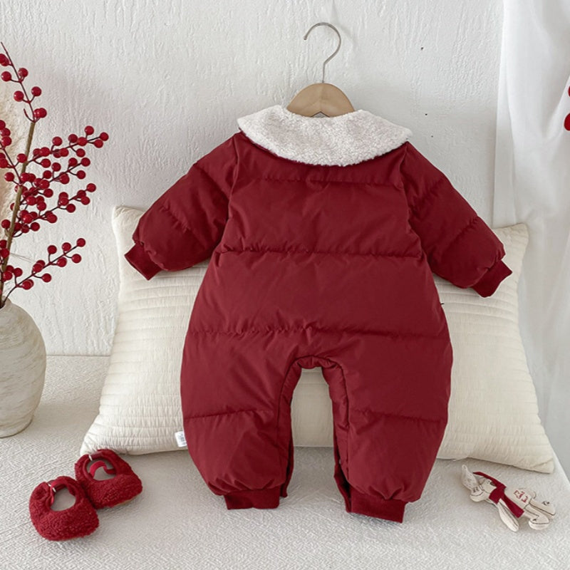 [66-90cm] 小花柄 キルティング ニット襟 あったか カバーオール