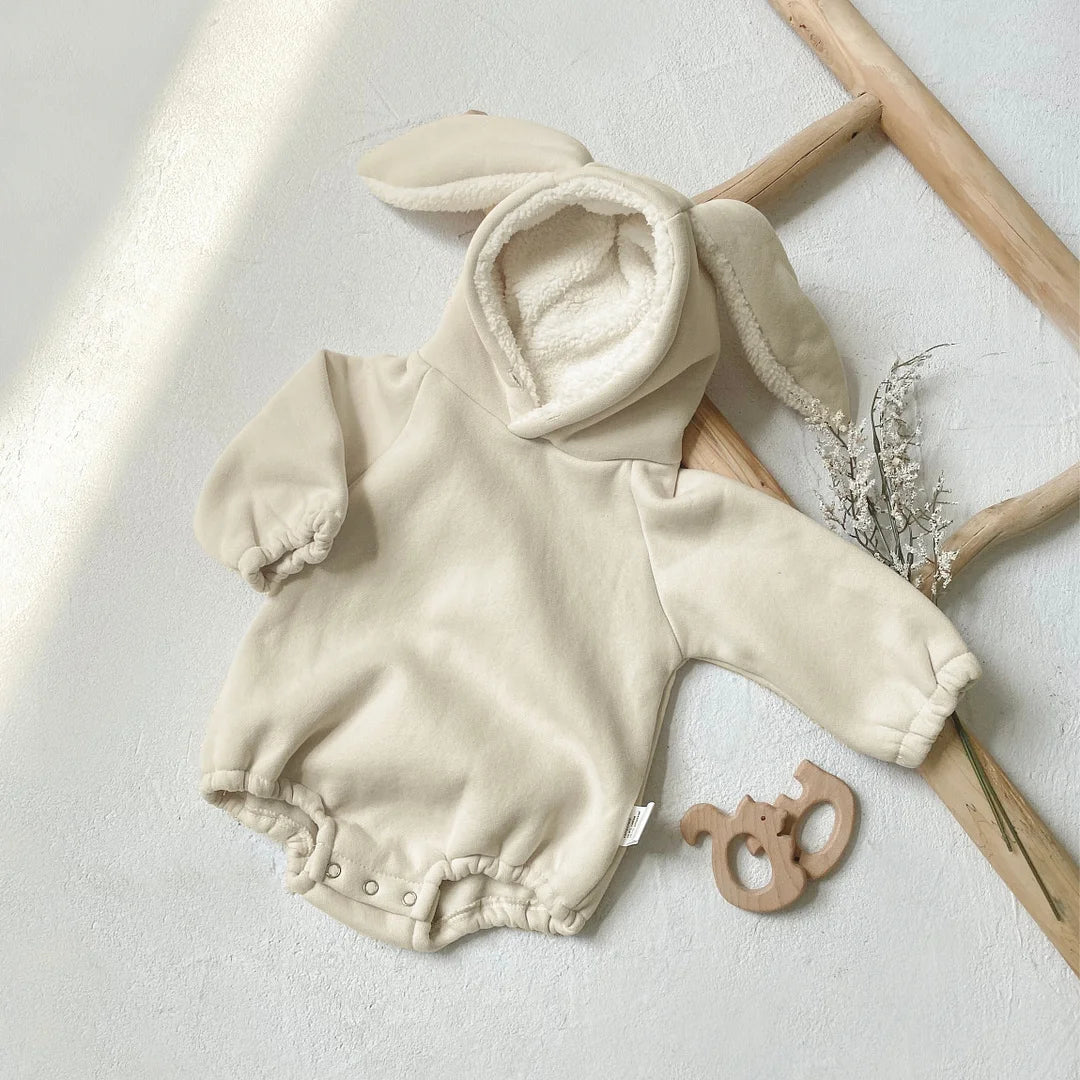 [66-90cm] ウサギ耳 フード付き ロンパース