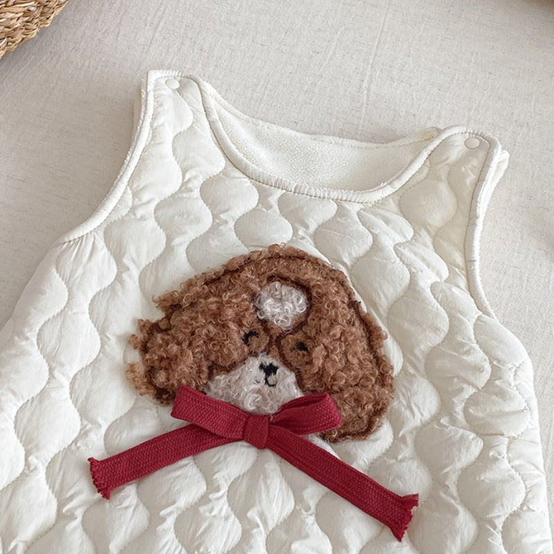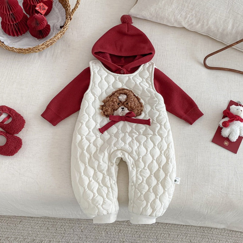 [66-90cm] キルティング わんちゃん カバーオール、フード付きニット