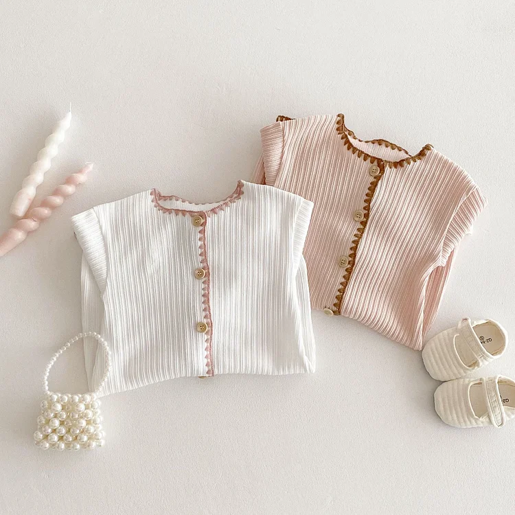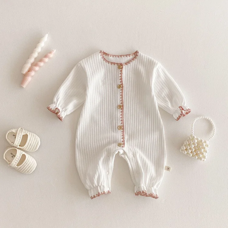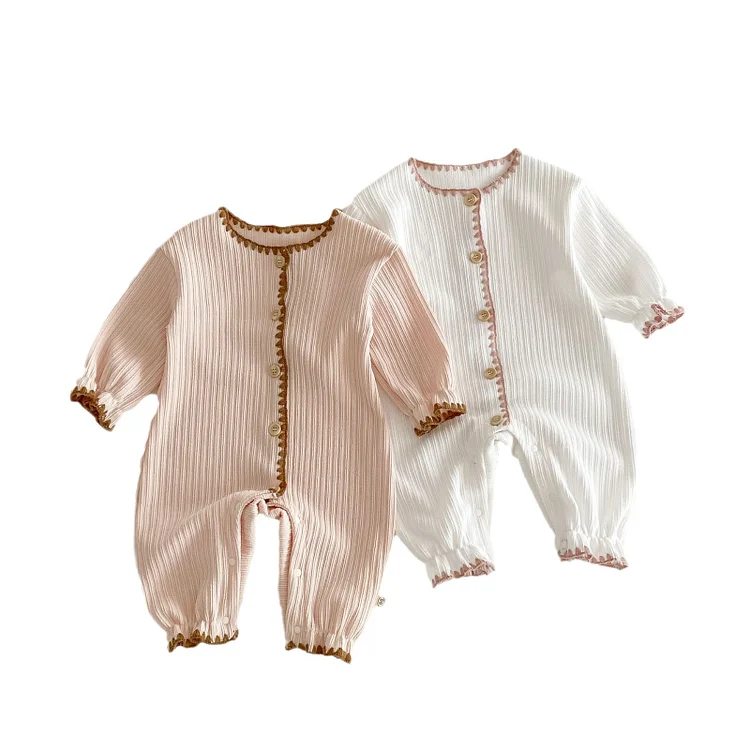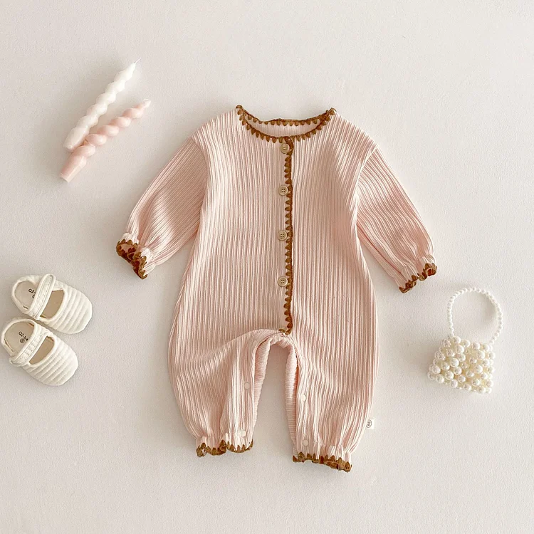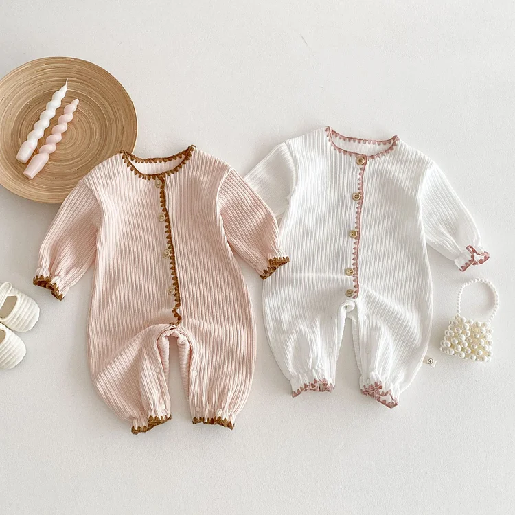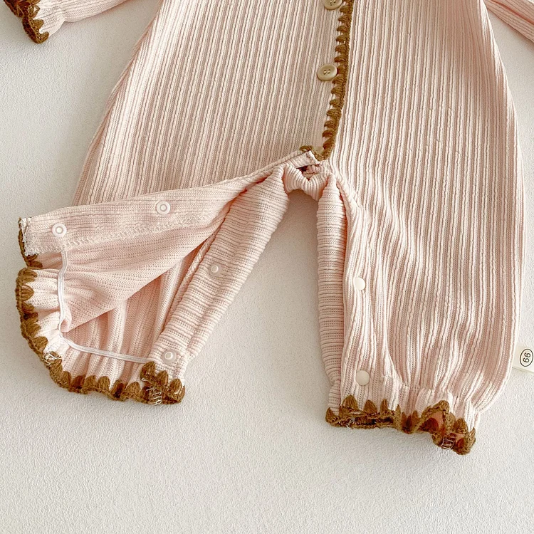 [66-90cm]ロンパース リボン レース襟 定番 肌触り良い ベビー服