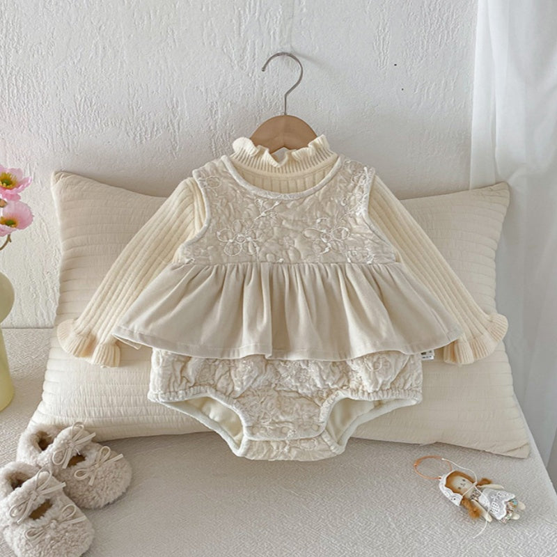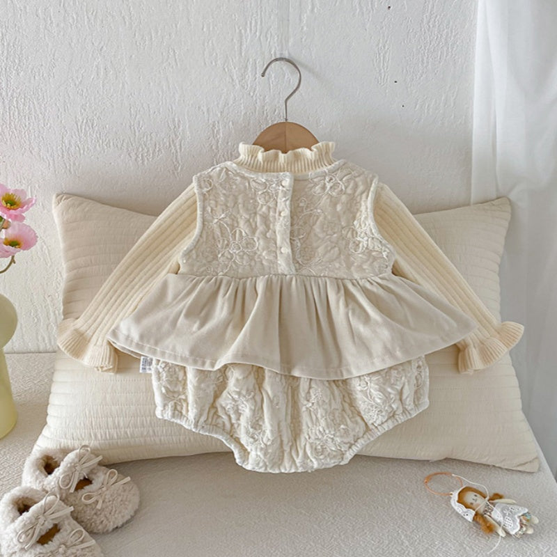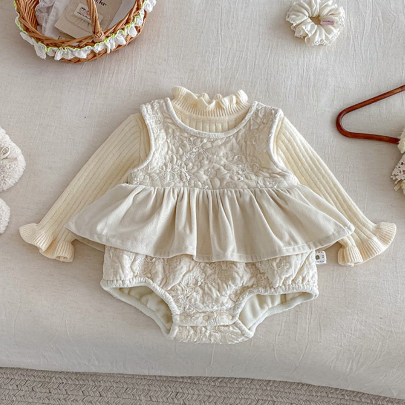 [66-90cm] ジャカードキルティング あったか カバーオール