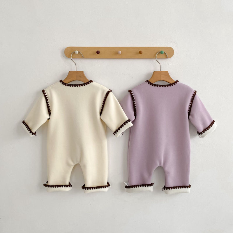 [66-90cm] シャネル風 裏起毛 カバーオール